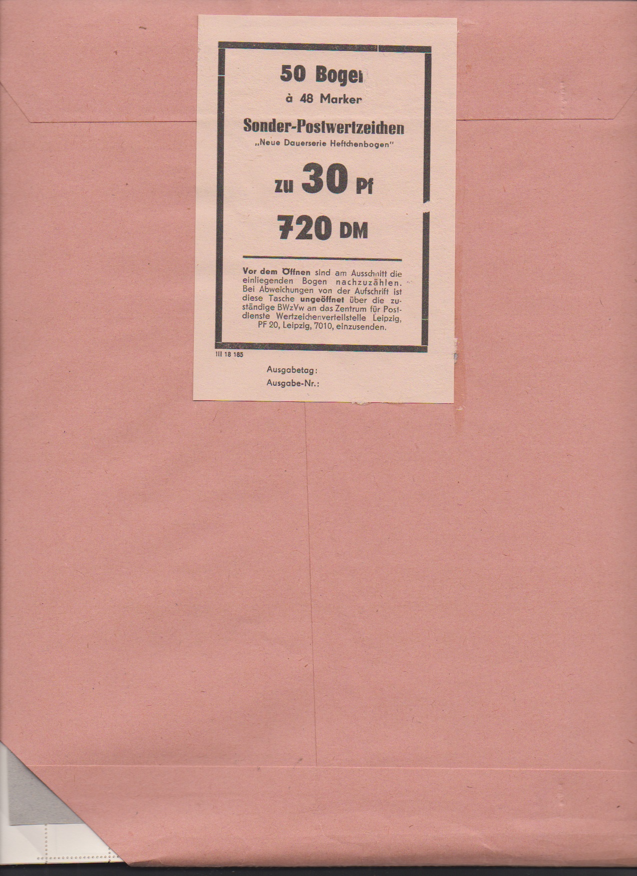 Dienst B, Verwaltungspost A, ZKD-Wertstreifen, 10 Pfg., "breite Buchstaben", "P" (Gera) postfrisch. Mi. 650,-