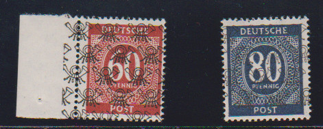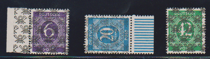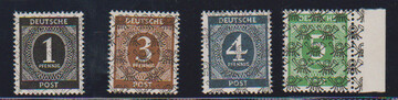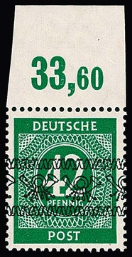 Ziffern-Bandaufdrucke komplett postfrisch, dabei 3, 4 und 42 Pfg. je Oberrandstücke, sign. Schlegel u.a. Mi. 950,-