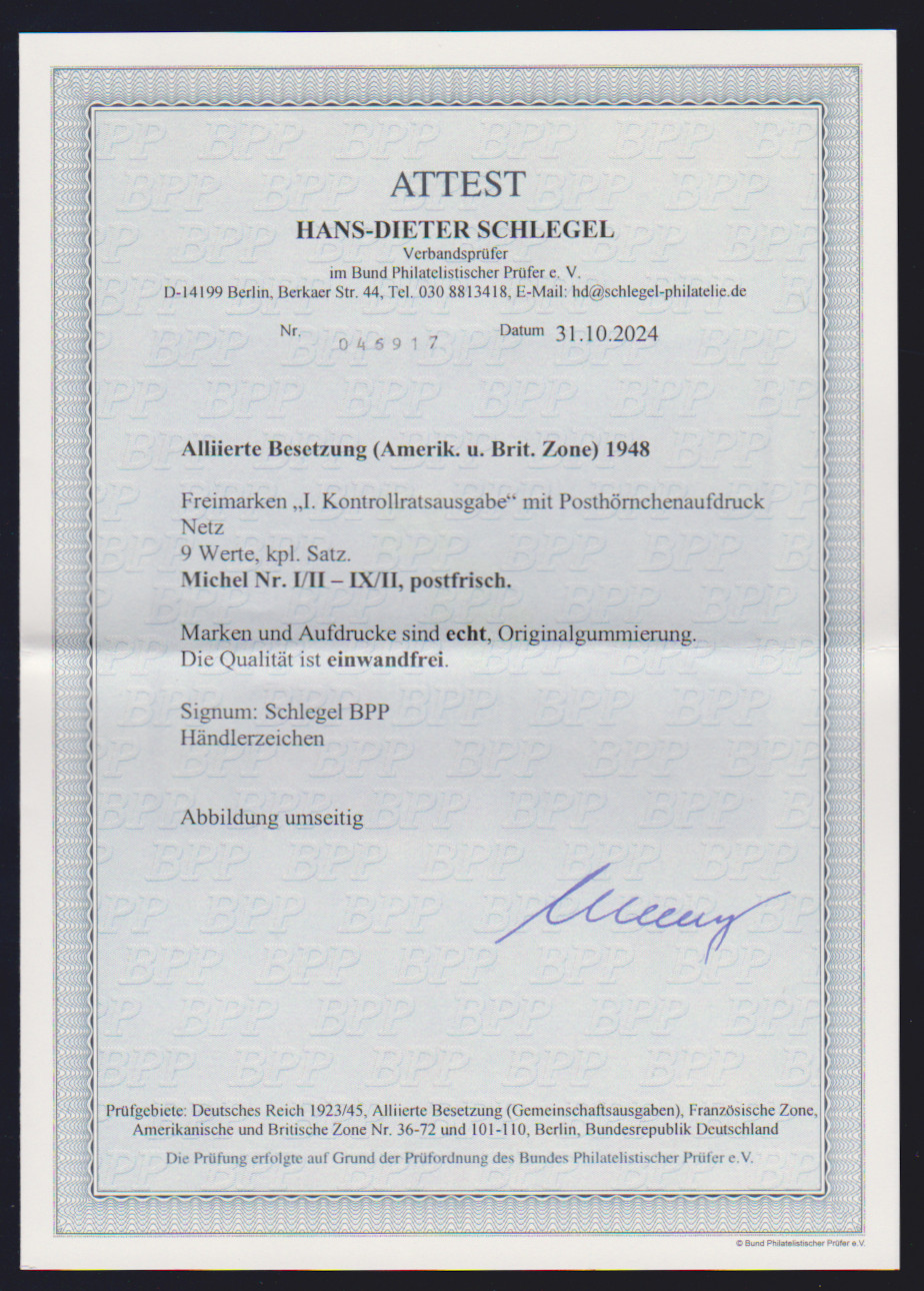 Ziffern mit Bandaufdruck tadellos postfrisch, sign. G. Schlegel und aktuelles Attest D. Schlegel. Mi. 1200,-