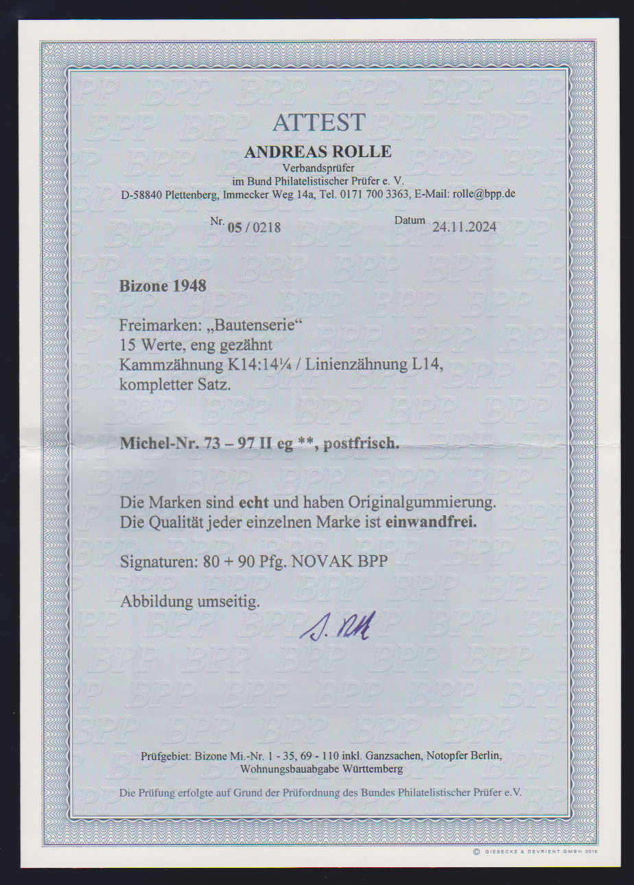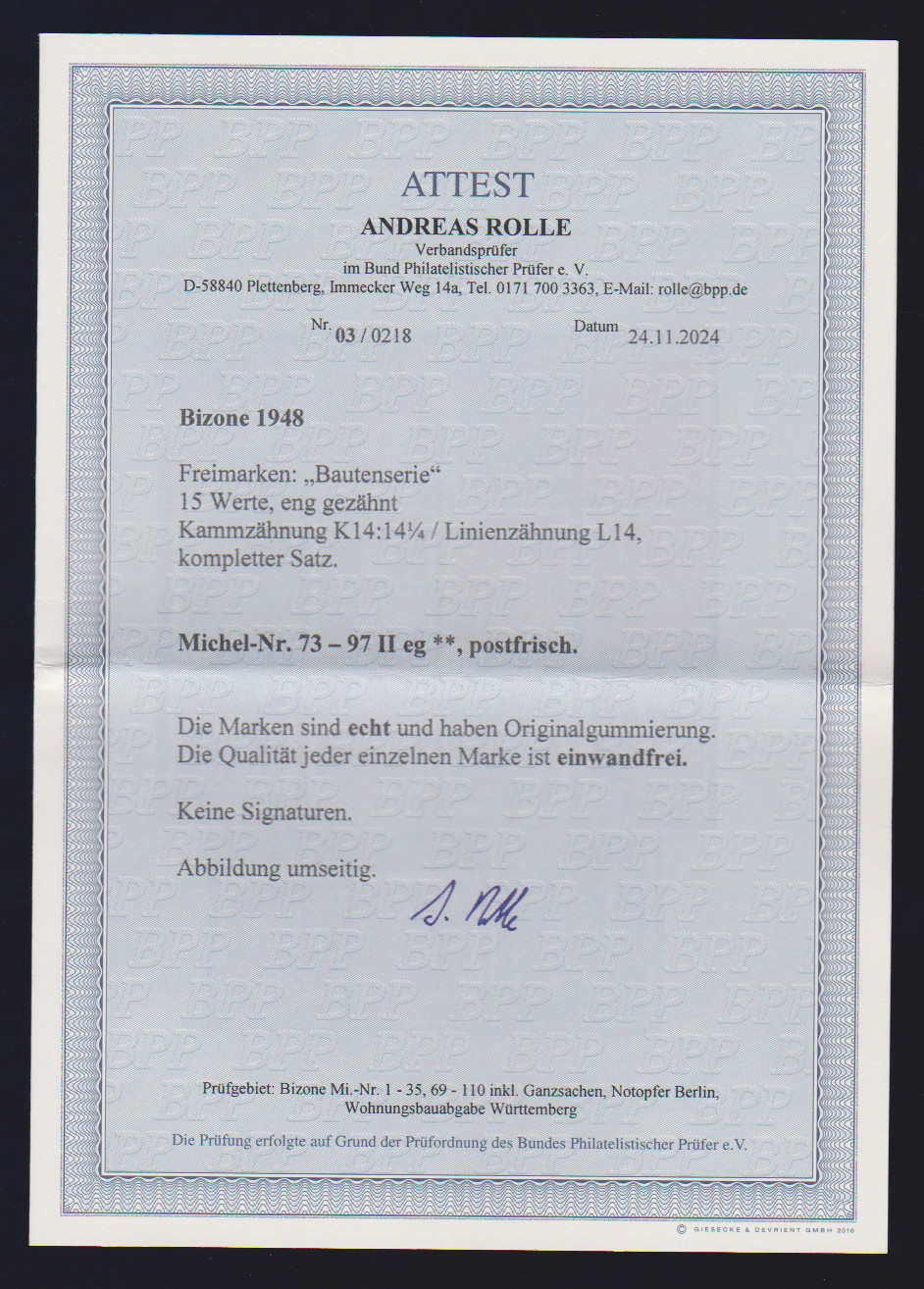 Bauten eg postfrisch, Attest Rolle. Mi. 730,-