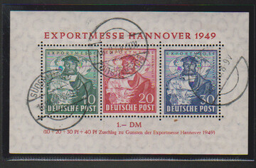 Exportmesse-Block mit Tagesstempel "Süderlügum", Attest Schlegel. Mi. 350,-