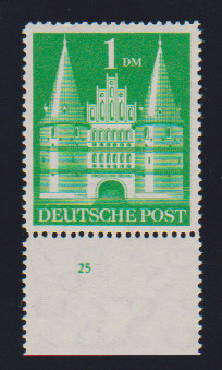 1 DM Bauten eg, postfrisches Unterrandstück mit Platten-Nr. "25", Mi. 420,-