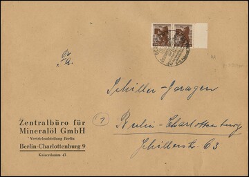 10 Pfg. Berliner Bär im Randpaar als gute Mehrfach-Frankatur auf Ortsbrief (bis 250gr.) aus Berlin. Michel nicht gelistet!