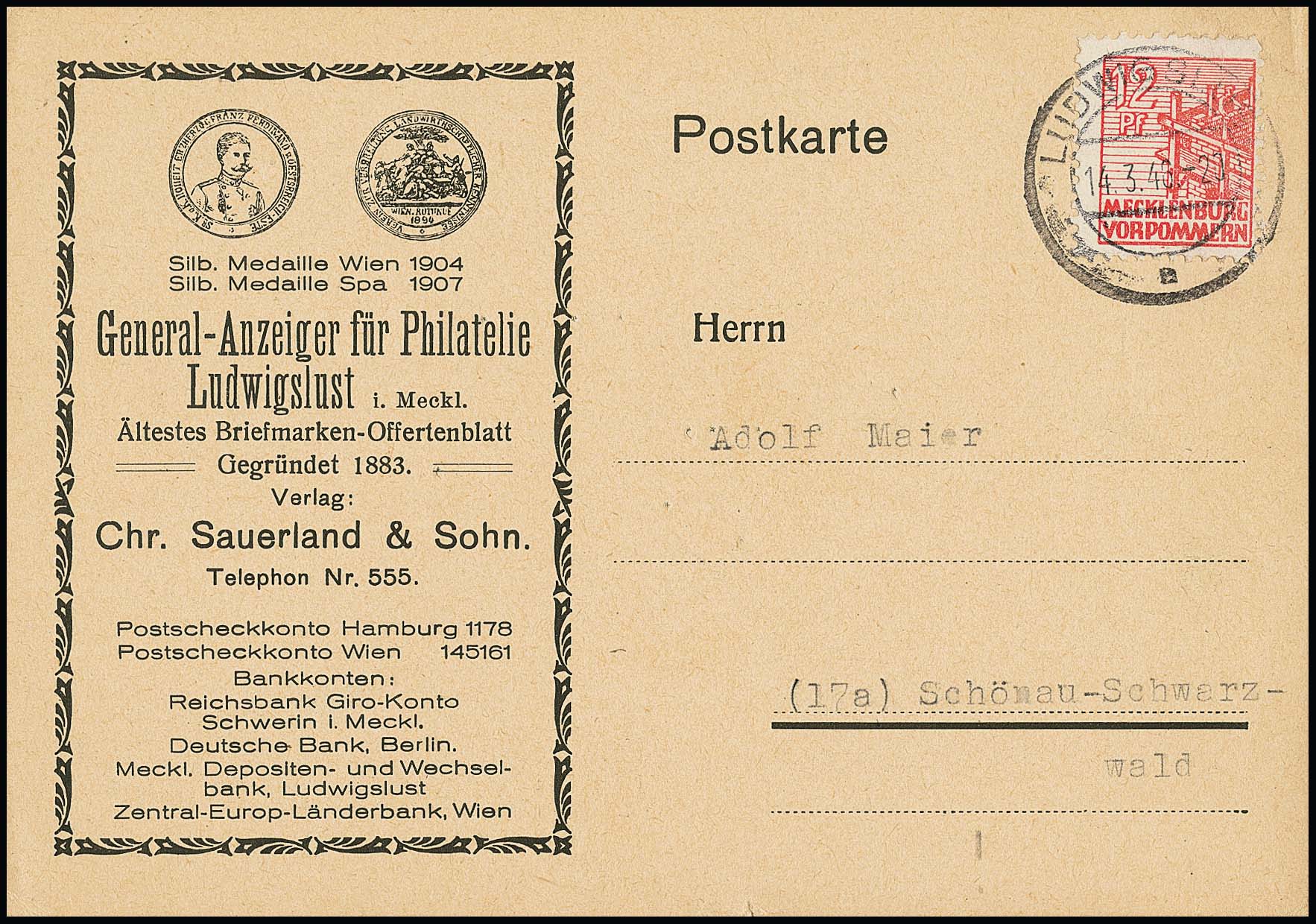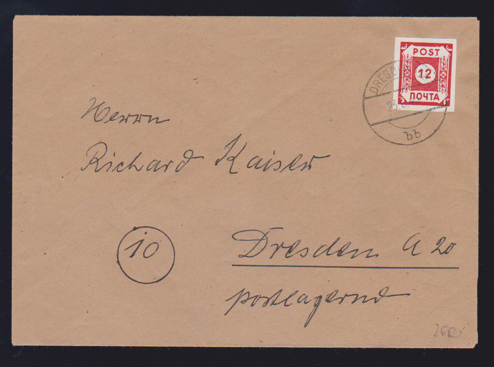 "POTSCHTA", Ölfarbe, auf typisch gefälligkeitsgest. Couvert, Mi. 800,-
