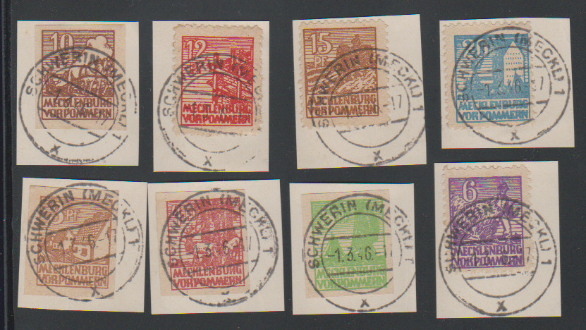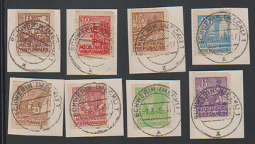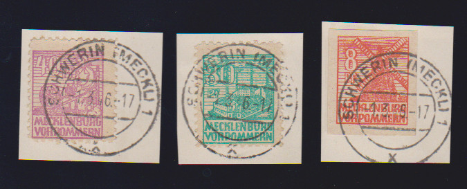 Abschied auf einheitlich "Schwerin"-gestempelten Briefstücken, sign. Kramp. Mi. 300,-