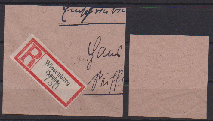 5 Pfg., nachträglicher Linien-Durchstich von Seiffen, auf sauber gestempeltem Briefstück ("Wiesenburg"), Attestkopie Ströh für aufgeteilten Brief mit Mischfrankatur. Mi. lose 800,- +