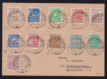 Abschied komplett, dabei alle Werte auf Kreidepapier, ab 15 Pfg. normales Papier, auf Sammlerbrief aus Schwerin, Mi. lose 453,-