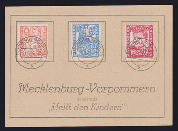Kinderhilfe auf Sonderkarte, sowie Abschied auf normalem Papier (dabei 5 Pfg. PF V) auf Hennig-R-Brief, Mi. lose 600,-