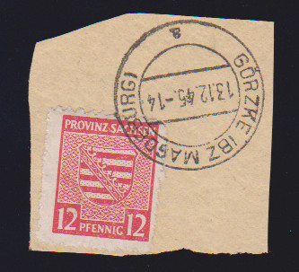 Provinzwappen kpl. auf R-Drucksache, sowie nochmals 12 Pfg. mit Postmeistertrennung von Görzke auf Briefstück (sign. Ströh). Mi. 435,- +