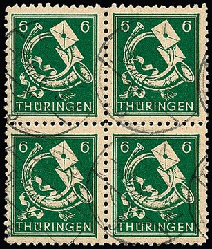 6 Pfg., gute Papiersorte, tadelloser, rundgestempelter Viererblock, Fotoexp. Schulz. Mi. lose 560,- +