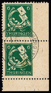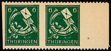 6 Pfg. im gestempelten Paar aus der rechten unteren Bogenecke, rechts ungezähnt. Mi. 500,-