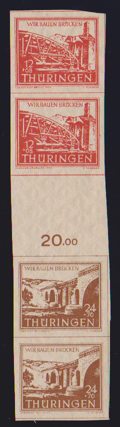 Brückenbau, Herzstück von Zusammendruckbogen postfrisch, ebenso 24 Pfg. in guter b-Farbe (sign. Ströh), Mi. 410,-