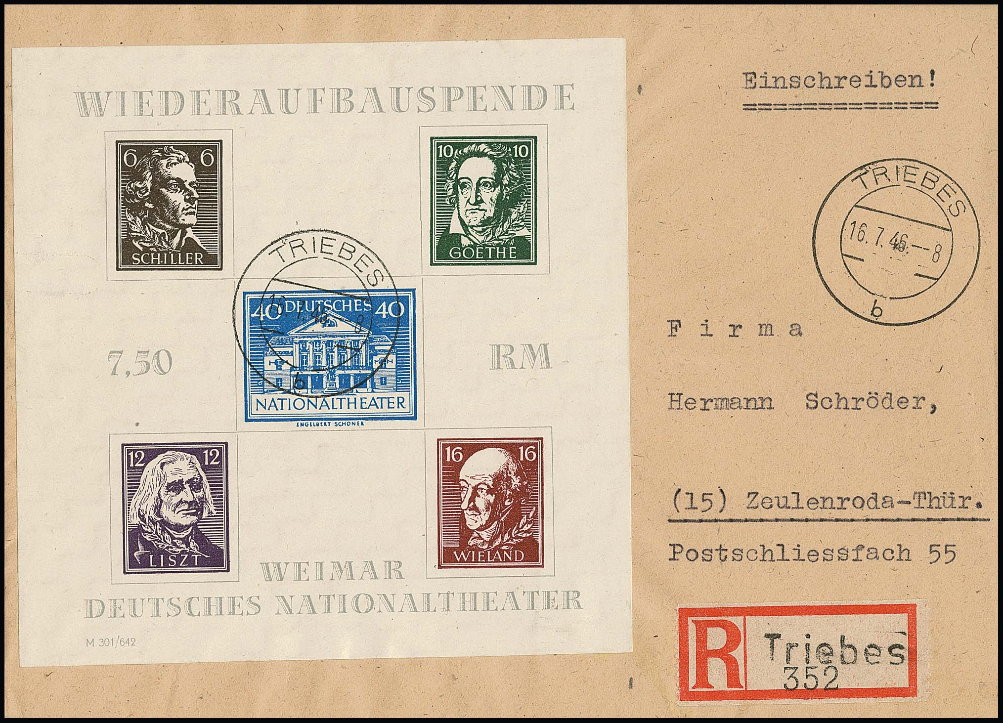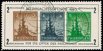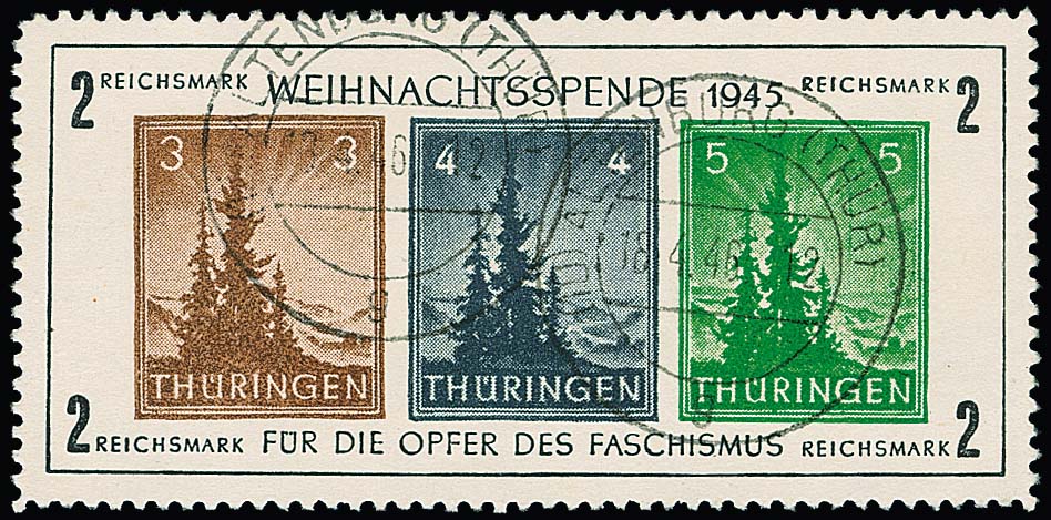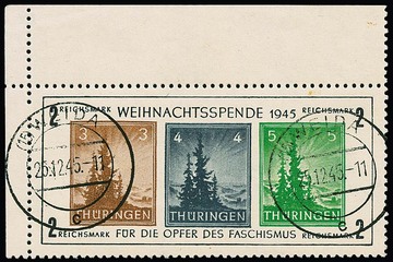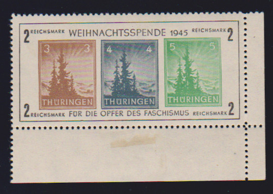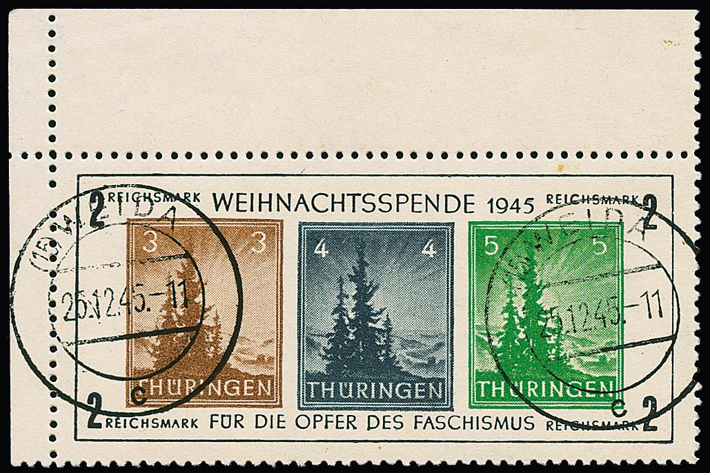 Antifa-Block auf x-Papier als linke obere Bogenecke mit Stempel "Weida", sign. mit Attest Zierer. Mi. 1100,-