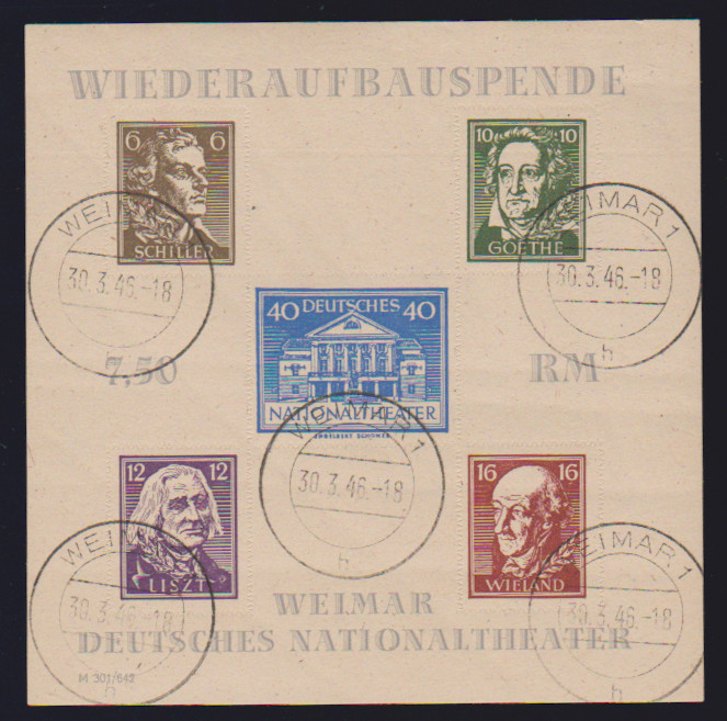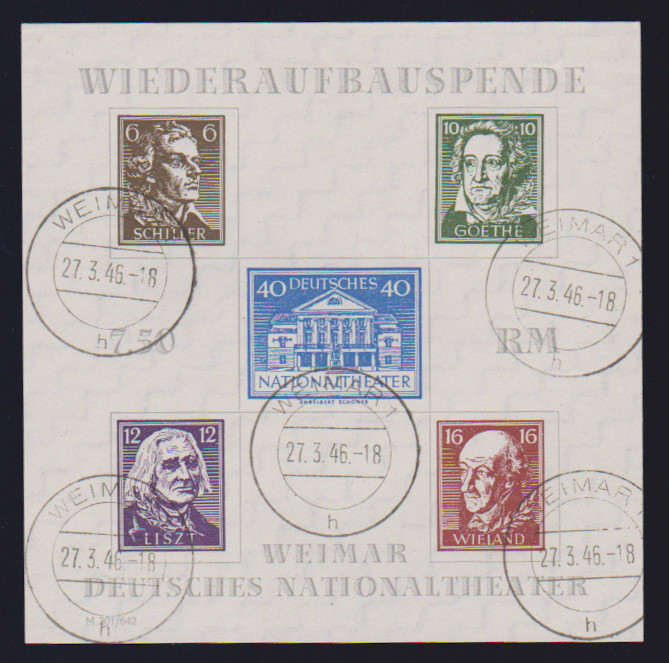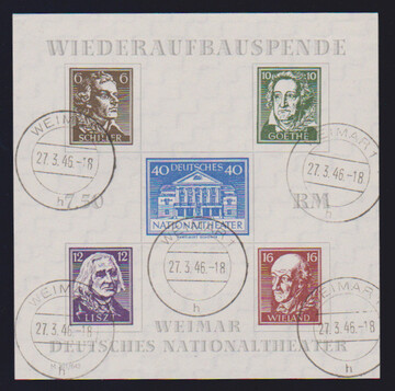 Brückenbau-Block mit Ersttags-Ortsstempel von Weimar. Winzig randhelle Stelle bzw. kl. Stauchung, Attest Ströh. Mi. 1700,-