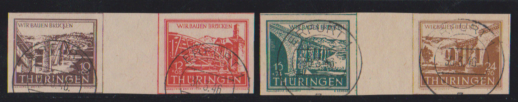 Brückenbau, alle vier Zusammendrucke in Type "ay" gestempelt, sign. Ströh. Mi. 240,-