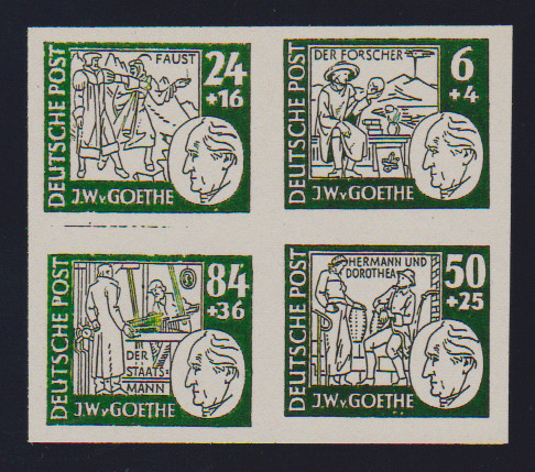 Goethe, Entwurf von vier versch. Werten von 6 bis 50 Pfg. im ungebrauchten geschnittenen Viererblock