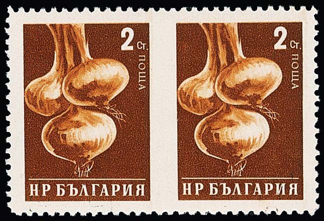 2 St. Gartenzwiebel im waagerechten postfr. Paar, in der Mitte ungezähnt, Michel nicht gelistet
