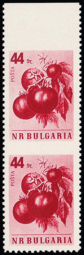 44 St. Tomate im senkrechten postfrischen Paar, oben und in der Mitte ungezähnt, Michel nur links ungezähnt bekannt (!)