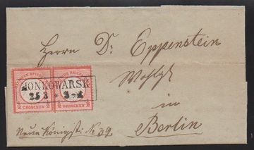 1/2 Gr. ziegelrot, Kabinettpaar mit idealem Ra2 "Monkowarsk" auf gef. Brief