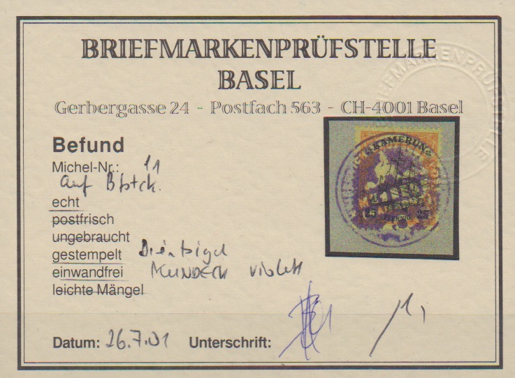 25 Pfg. auf Briefstück mit violetter Dienstsiegel-Entwertung "Mundeck", Fotoexp. Bach/Eichele