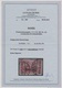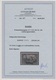 4 Mk. a. 2 Fr. im gestempelten senkrechten linken Randpaar, dabei obere Marke (Feld 1) Plattenfehler "Querbalken der Wertziffer 4 verdickt", alleine Mi. 400,-, Attest Huylmans