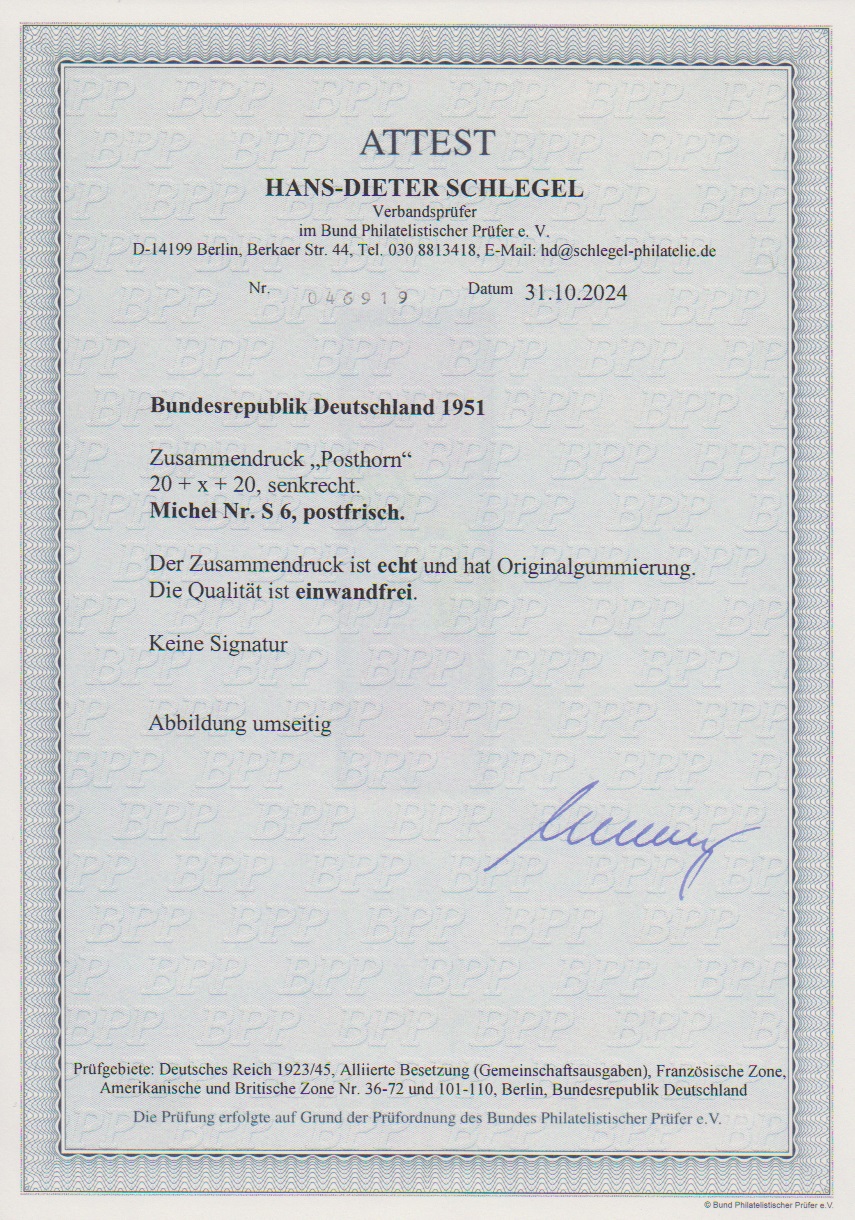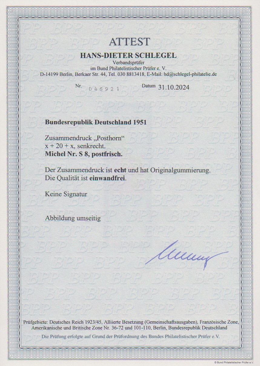 20 Pfg. Posthorn, senkrechtes Zusammendruckpaar mit Andreaskreuz tadellos postfrisch. Mi. 800,-, Attest D. Schlegel