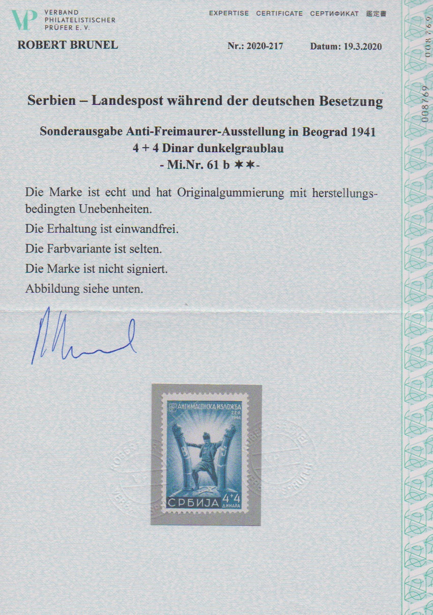 4 + 4 D. Anti-Freimaurer-Ausstellung tadellos postfrisch in der seltenen dunkelgraublauen Nuance, Attest Brunel. Mi. 2500,-