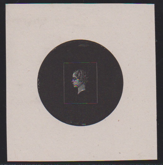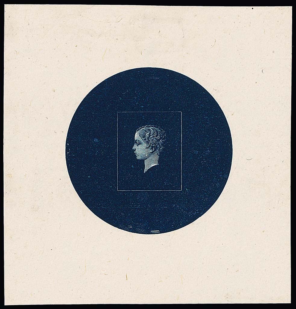 1869, zwei Essay-Einzelabzüge in schwarz und dunkelblau, nur Kopf-Abbildung ohne Werteindruck zu einer geplanten Freimarkenserie, siehe Foto, signiert