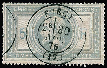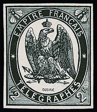 Telegraphenmarke 2 Fr. schwarz, 1868, seltener Probedruck
