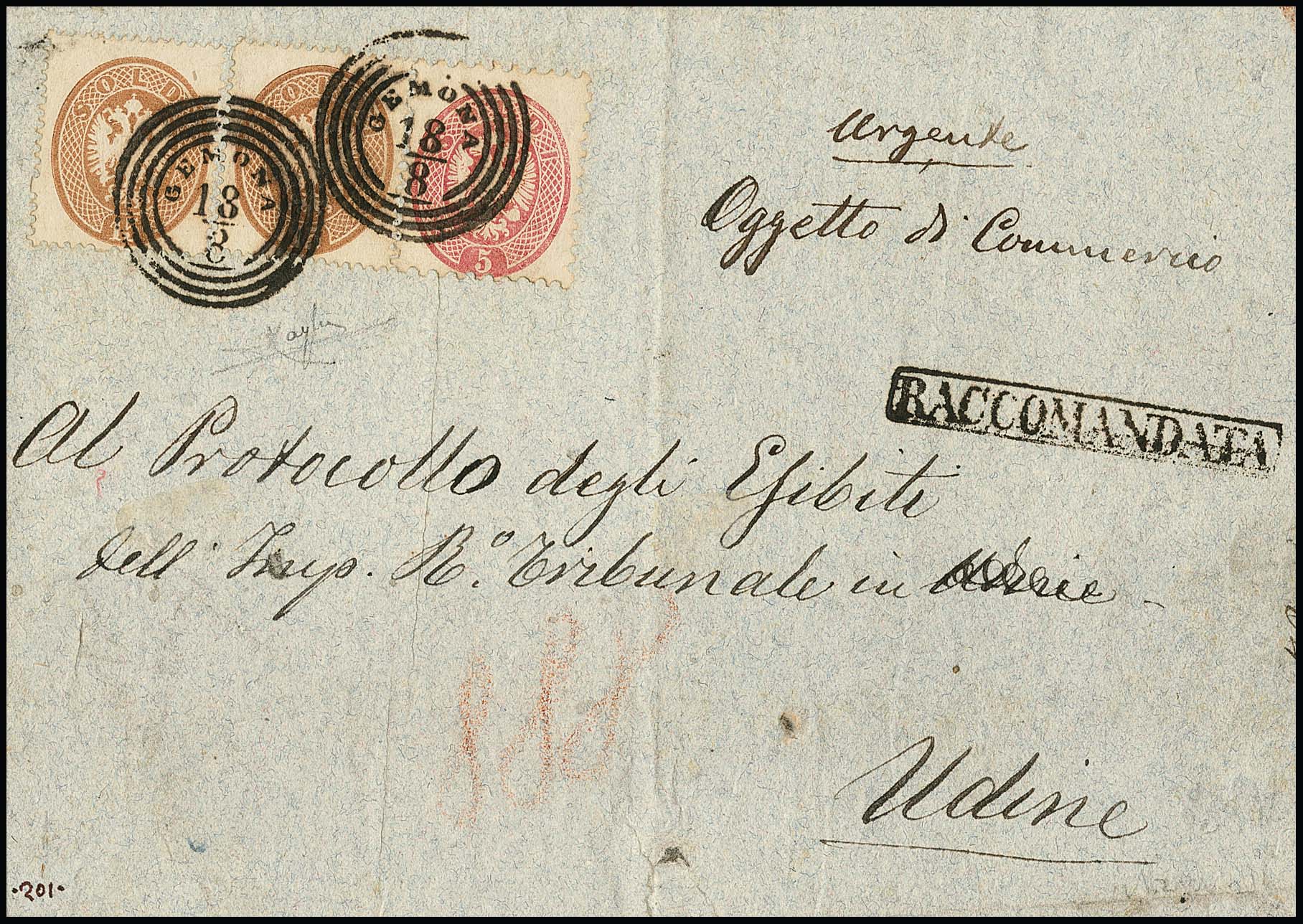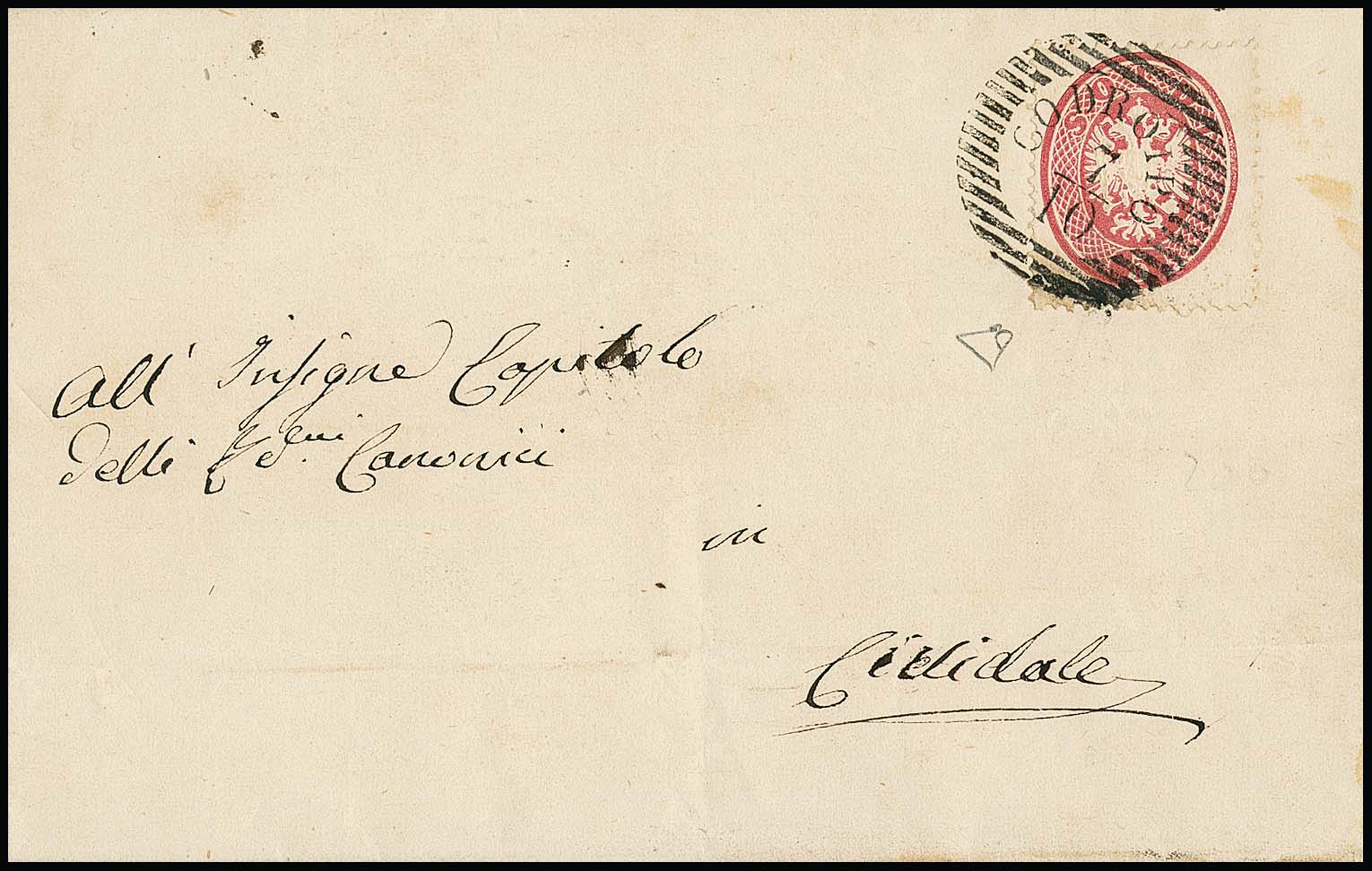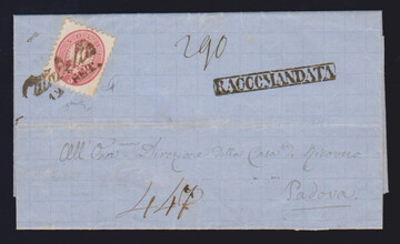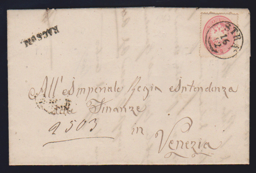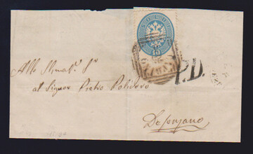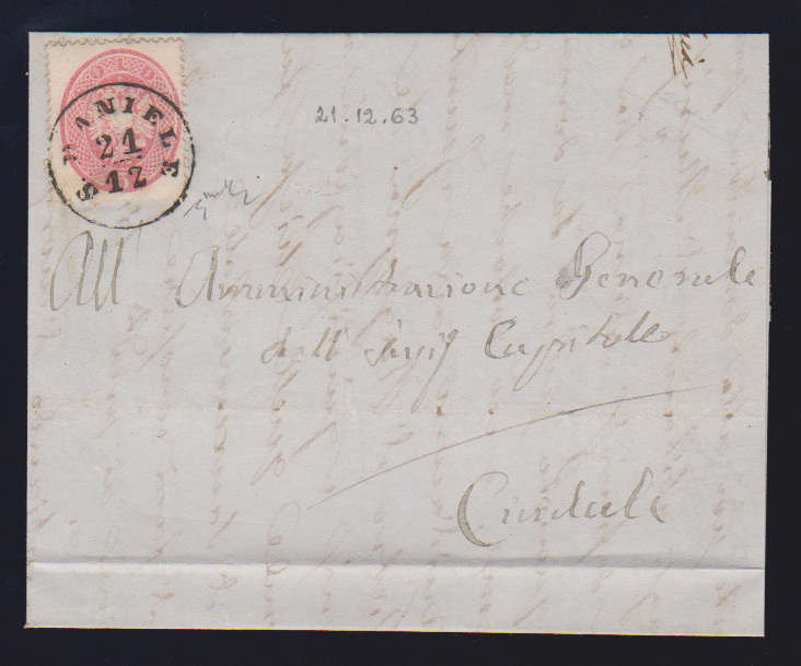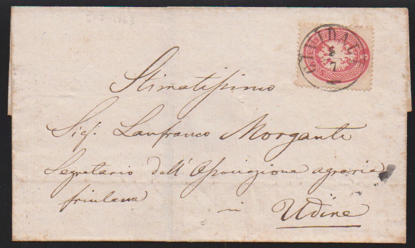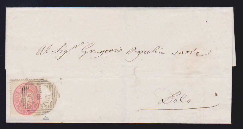 5 Sld. rosa, Kabinettstück auf gef. Brief 1863 mit besserem K1 "S. Daniele"