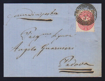 5 Sld. rosa auf Kabinettbrief mit besserem Dreiringstempel "Primolano" sehr klar, sign. Diena