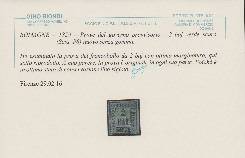 2 Baj. schw./dunkelgrün, seltener Probedruck, sign. Sorani und Attest Biondi