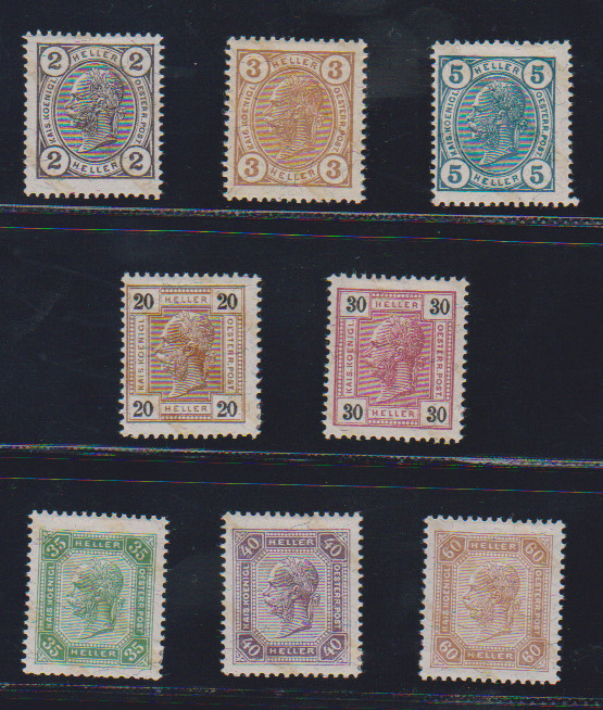 Freimarken, acht verschiedene Werte in C-Zähnung ungebraucht: 2, 3, 5, 20, 30, 35, 40 und 60 H. Mi. 324,-