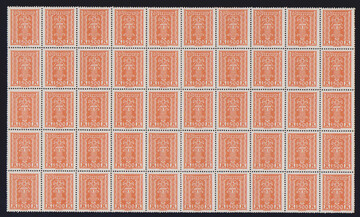 1500 Kr. orange, 1922, 900 postfrische Werte je in 50er-Blöcken. Mi. 27.000,-