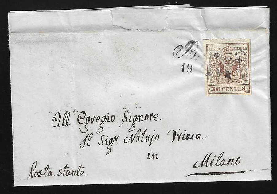 "Bormio", Schreibschrift-L2 auf Prachtbriefchen 30 C. (rs. Ra2 "Portalettere 2. Distribuzione"), sowie auf loser 15 C.