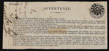 "Chiavenna", stummer Mühlradstempel 1859 auf Einlieferungsschein (kl. Tintenbrüche), Müller 71d/600 P.