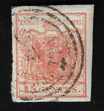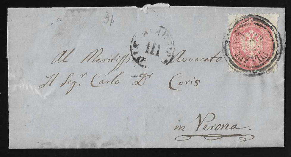 15 C. rosa, Handpapier, Erstauflage, breitrandiges Kabinettstück auf frühem Brief mit Zier-K2 "Verona" vom 15.6.1850, sign. Diena, Müller 263f