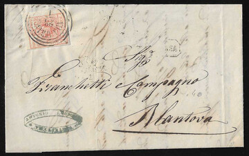15 C. rosa, Handpapier, breitrandig, auf Kabinettbrief mit besserem L2 "Marcaria" nach Mantua, Müller 142a