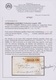 5 C. ockergelb, Handpapier, auf Pracht-Drucksache mit Stab-Ra1 "Mantova 21-10-50", unter der Marke im Briefpapier Falte, Attest Colla "perfetto"