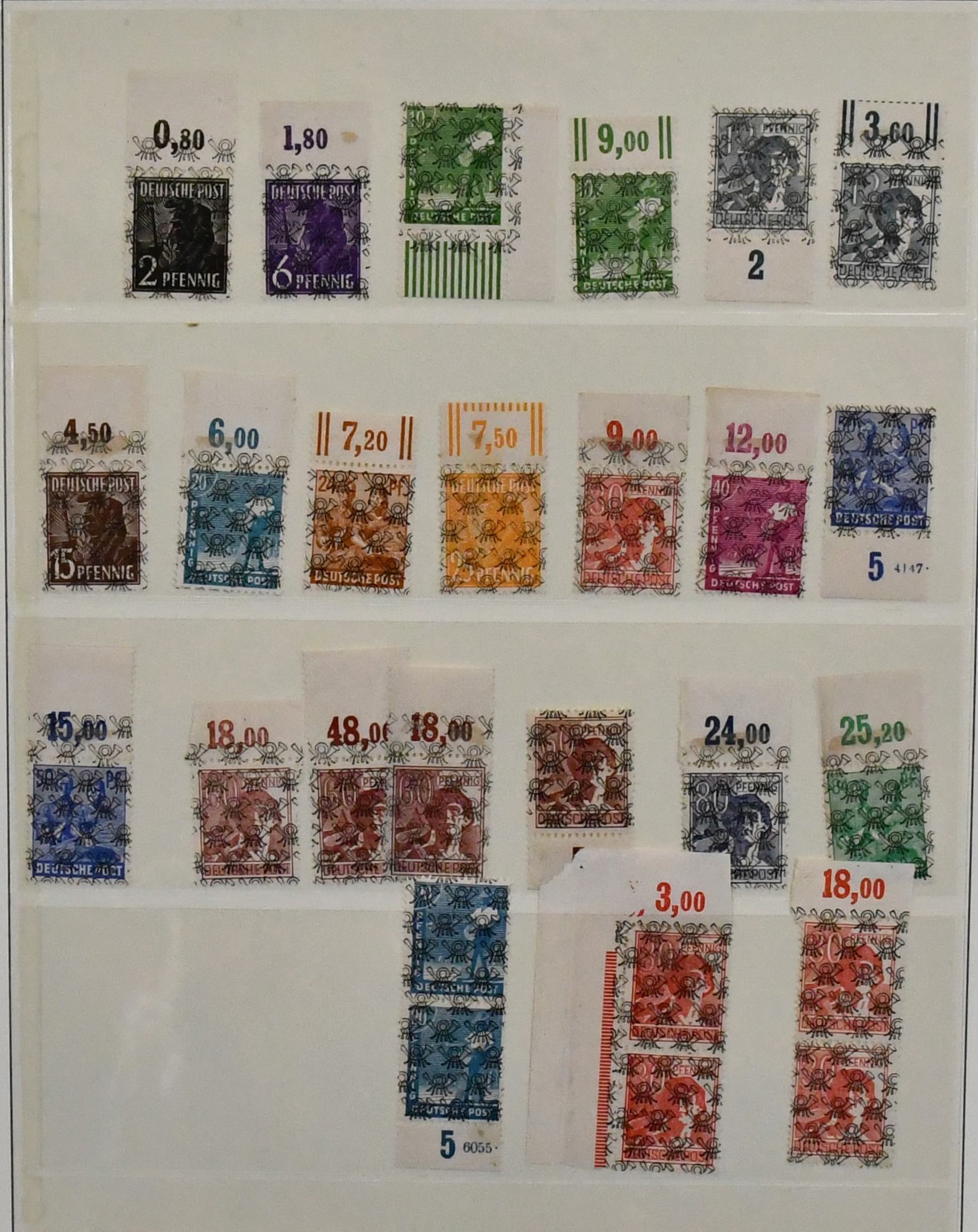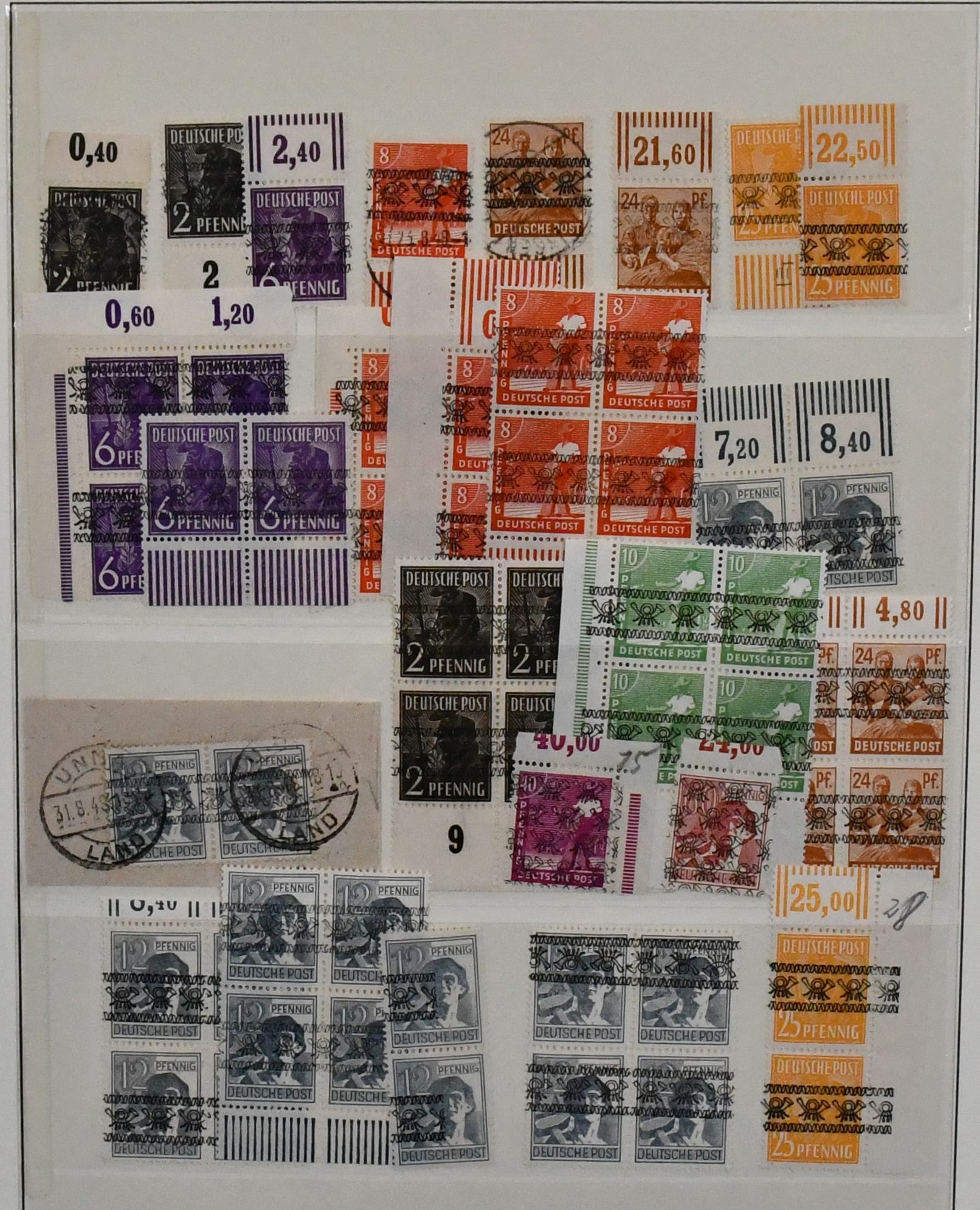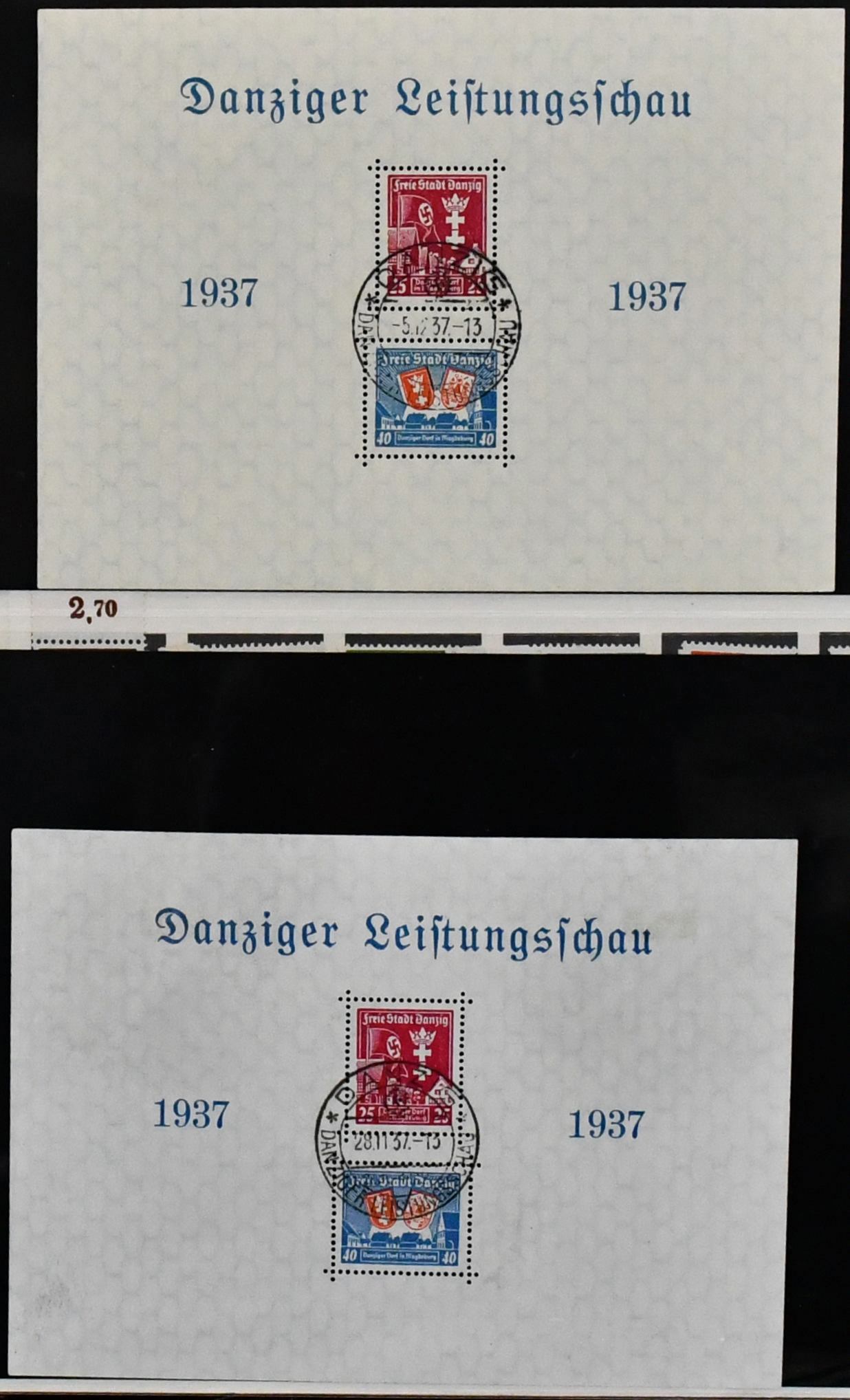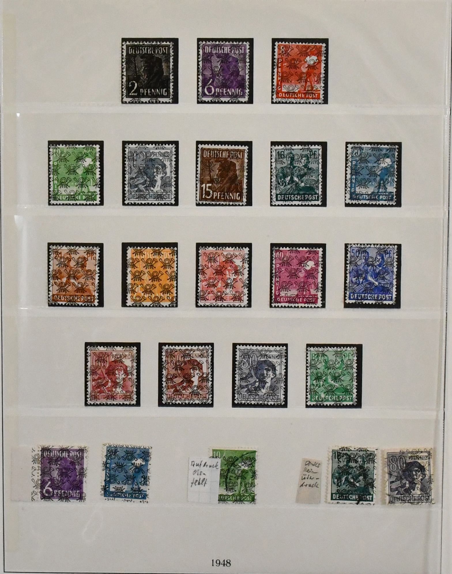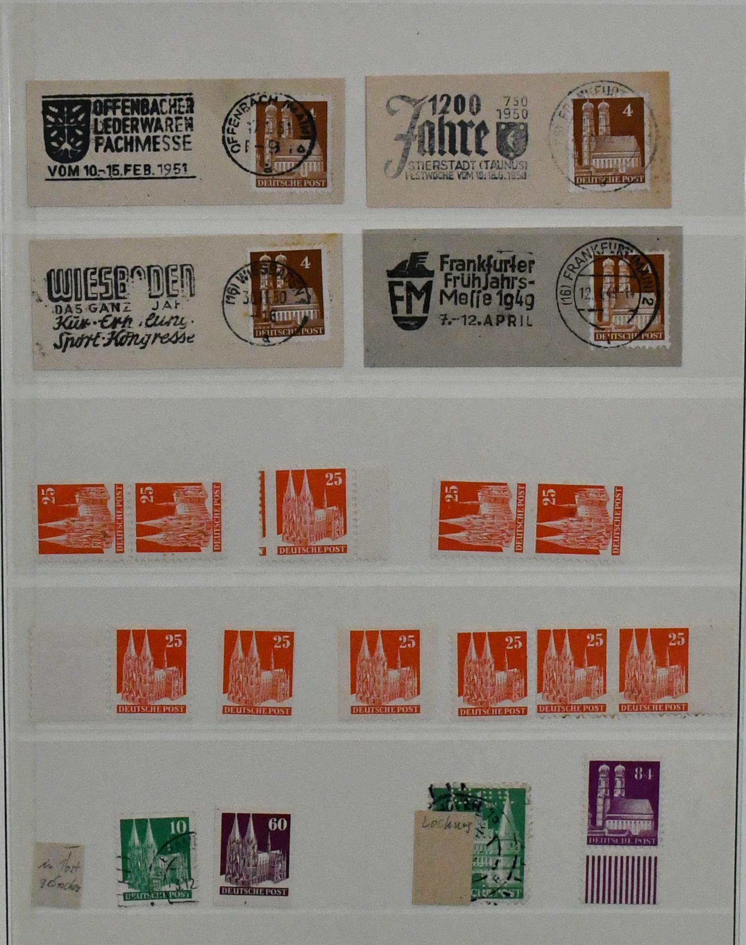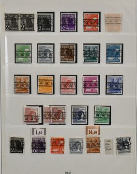 Deutschland, Sammlungsbestand in zwei Bänden mit Material in untersch. Erhaltung, vielfach spezialisiert, dabei Danzig 1937-39 teils mehrfach, u.a. Bl. 1/3, einige Briefe, Dienst u. Porto, Bizone mit Arbeiter- u. Ziffern-Aufdrucken, dabei Kopfsteher, Druckerzeichen, Bauten, Nr. 101 mit mehreren Teilzähnungen (ohne Gummi), Belege etc. (350,-)