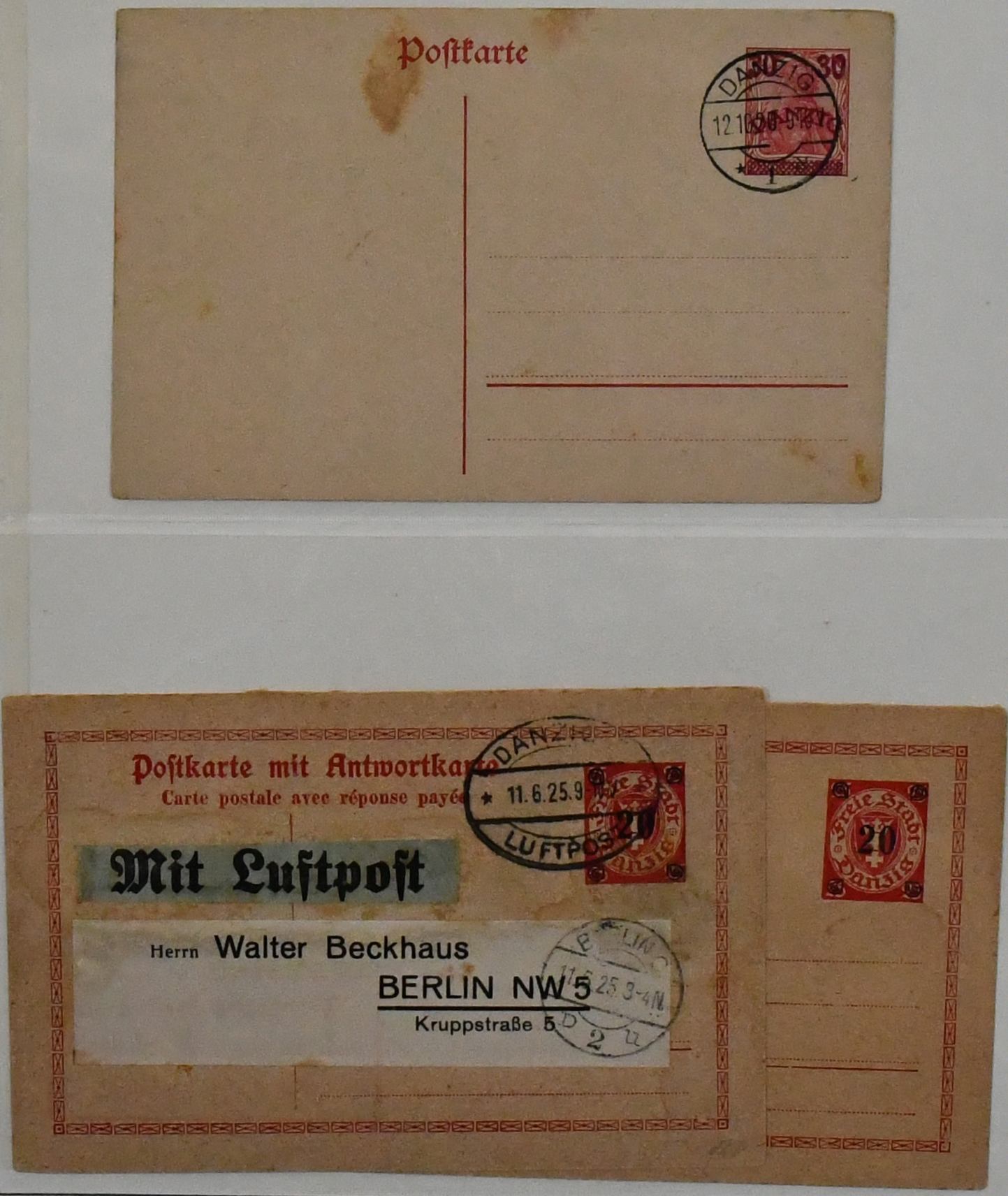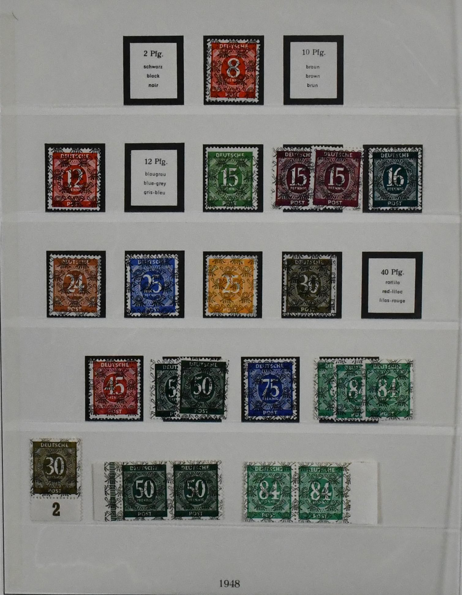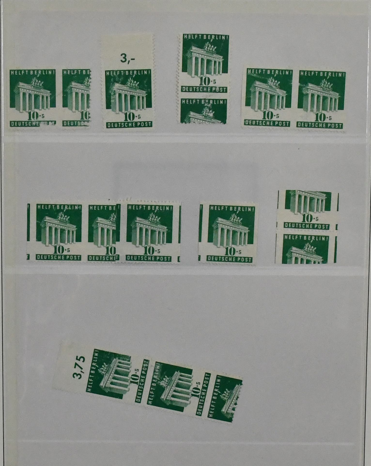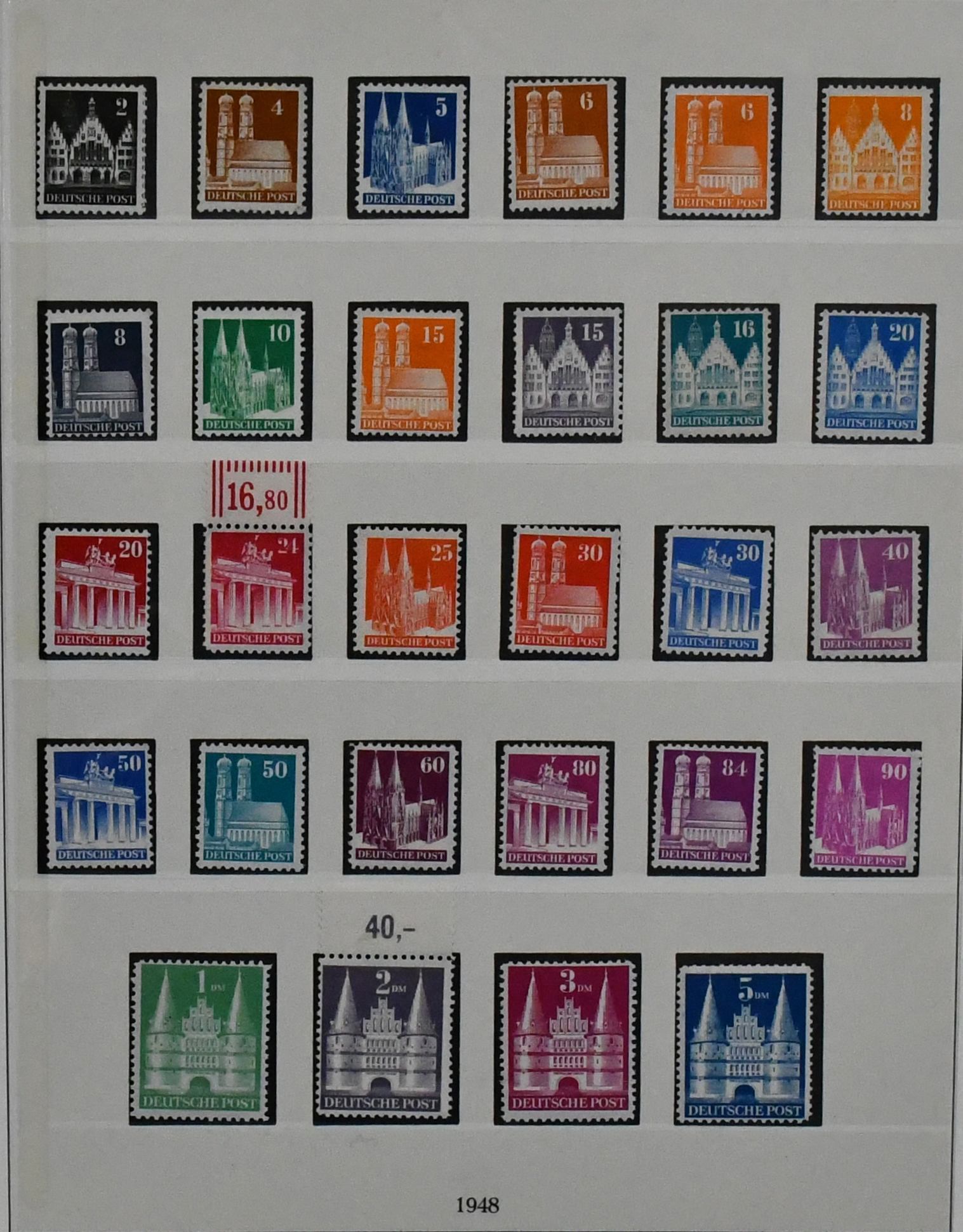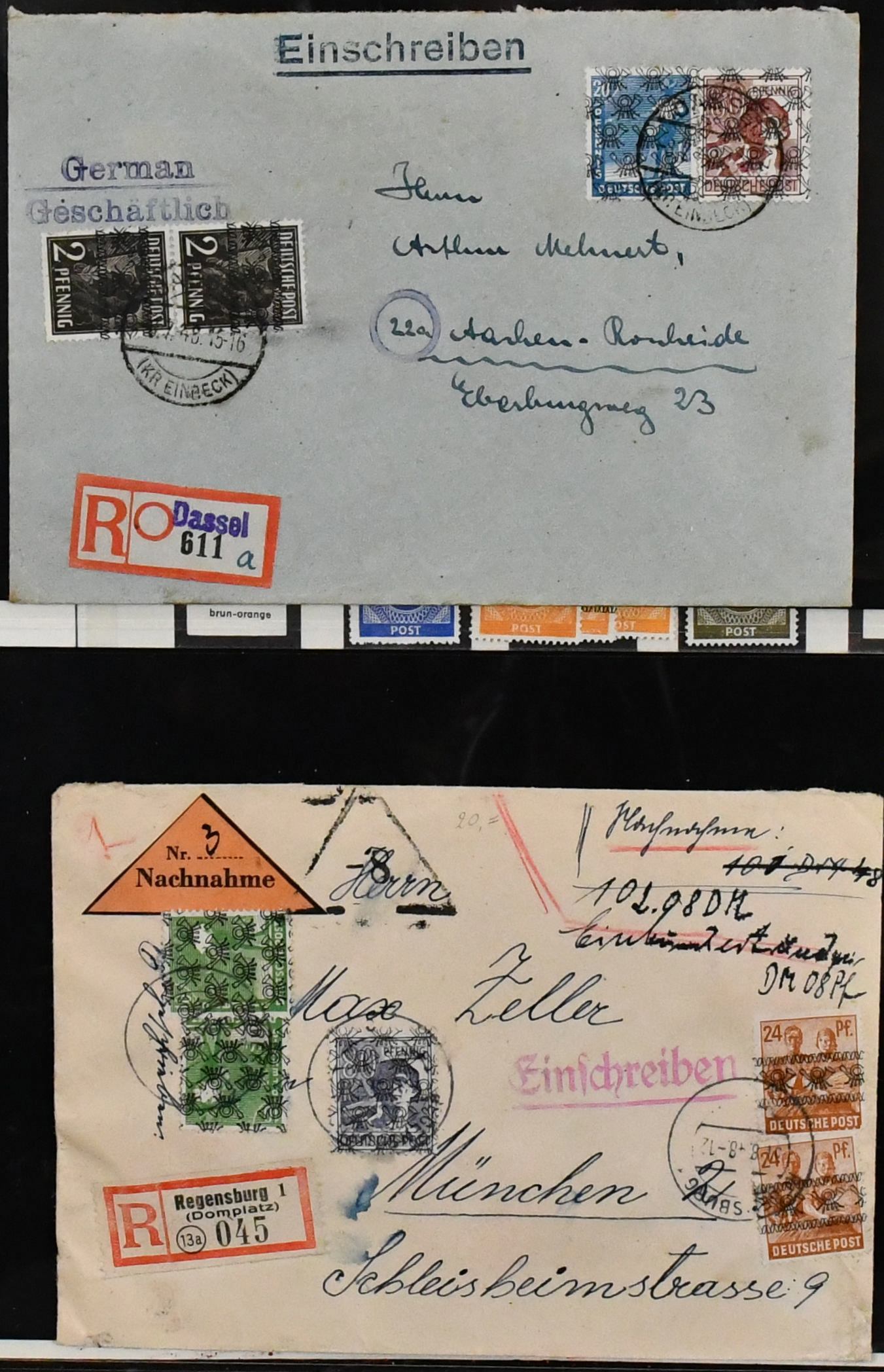 Deutschland, Sammlungsbestand in zwei Bänden mit Material in untersch. Erhaltung, vielfach spezialisiert, dabei Danzig 1937-39 teils mehrfach, u.a. Bl. 1/3, einige Briefe, Dienst u. Porto, Bizone mit Arbeiter- u. Ziffern-Aufdrucken, dabei Kopfsteher, Druckerzeichen, Bauten, Nr. 101 mit mehreren Teilzähnungen (ohne Gummi), Belege etc. (350,-)