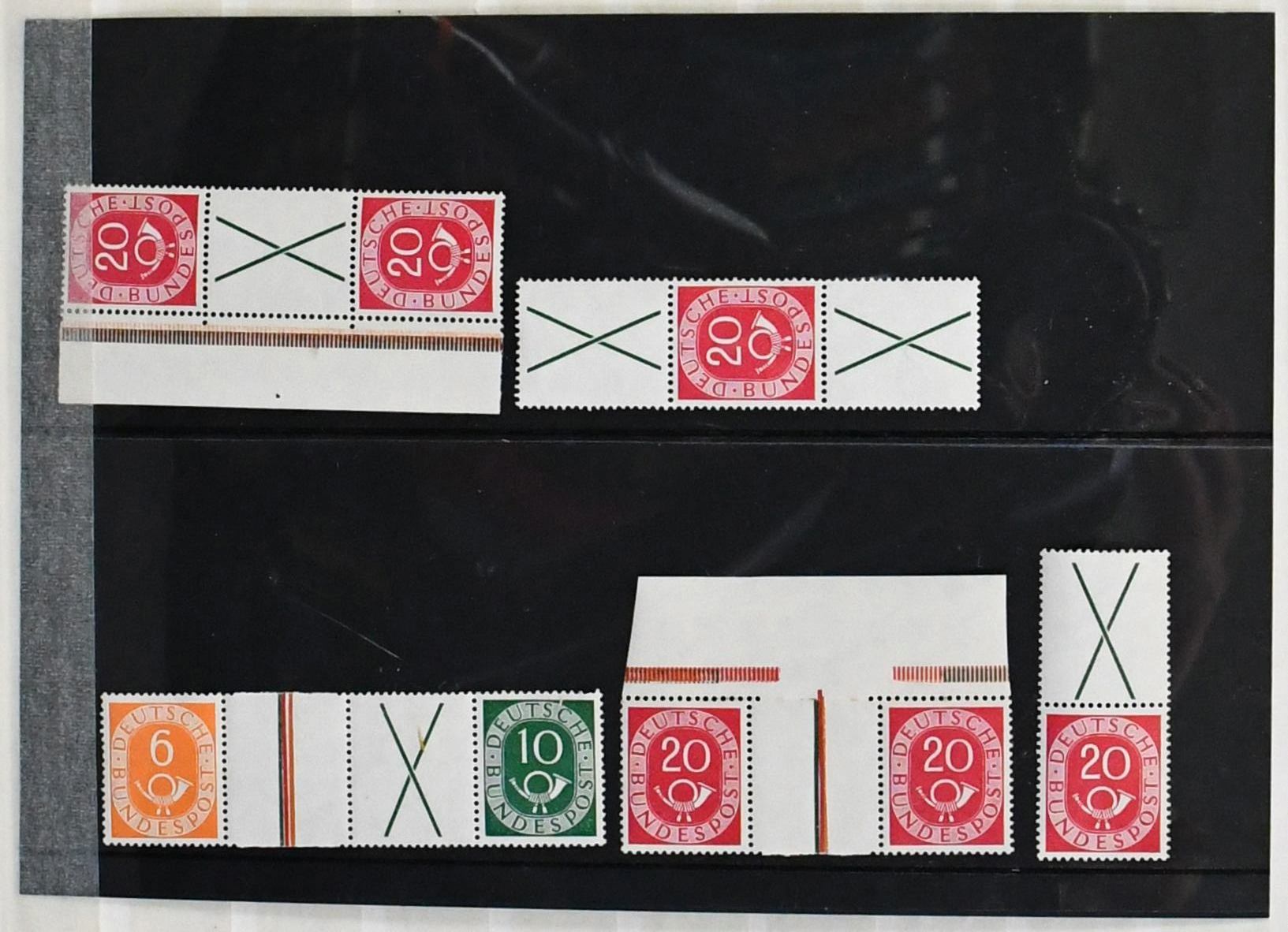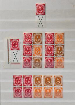 Deutschland, dreibändiger Sammlungsbestand in allen Erhaltungen, neben Spezialteil Infla mit u.a. geprüften Besonderheiten und einigen Befunden zur Abschiedsserie, auch guter Zusammendruck-Teil Bund mit Posthorn-Zus.-Dr., z.B. WZ4, S6, 7, 8 (400,-)