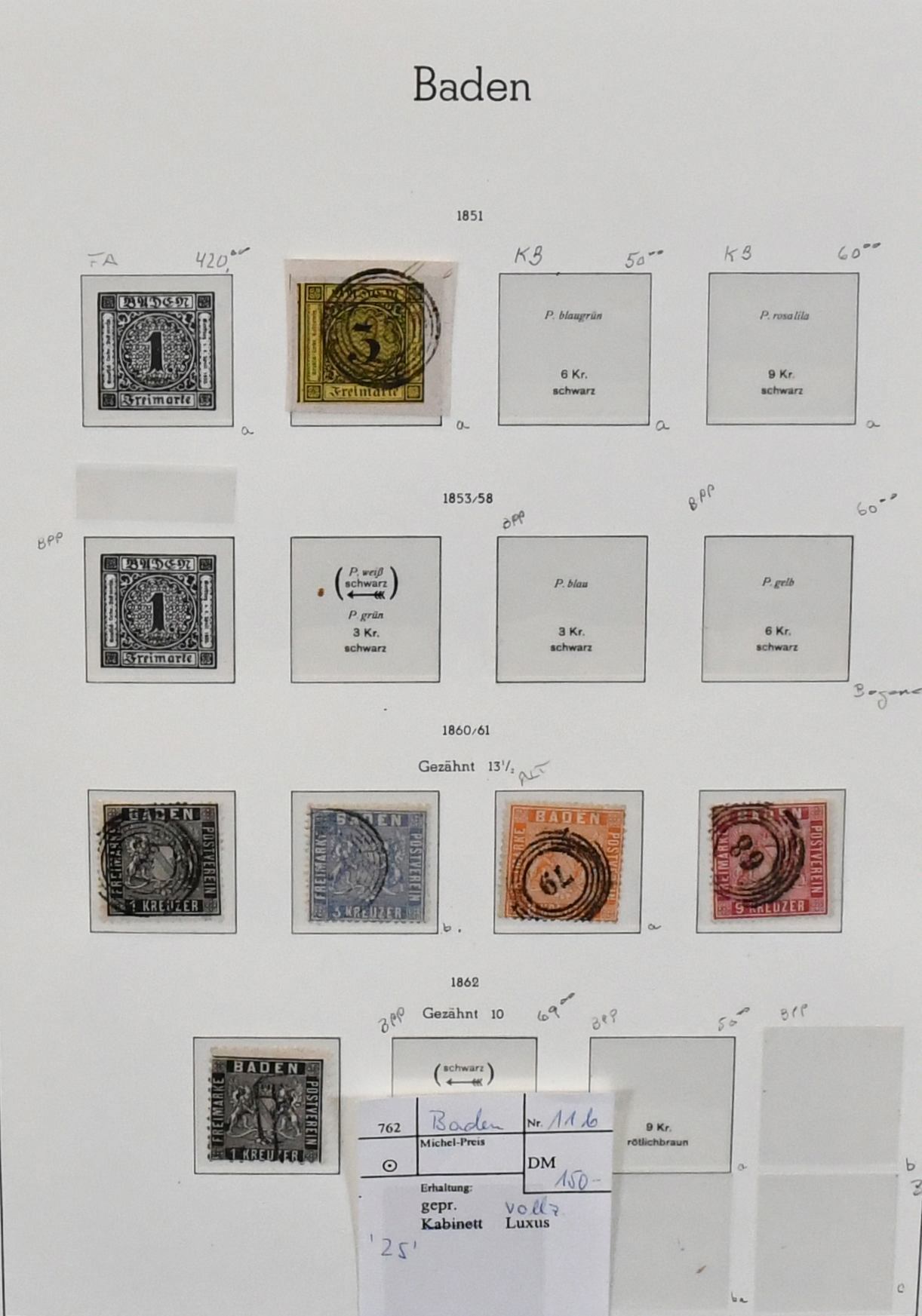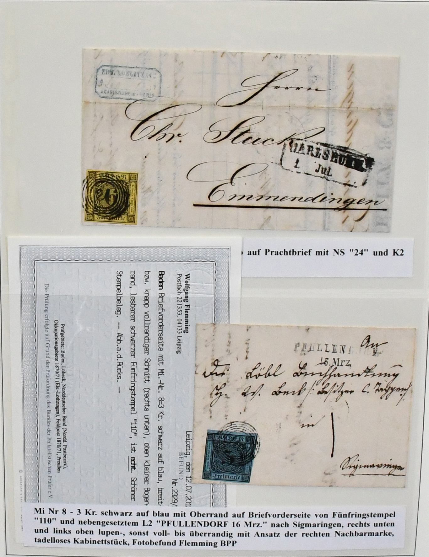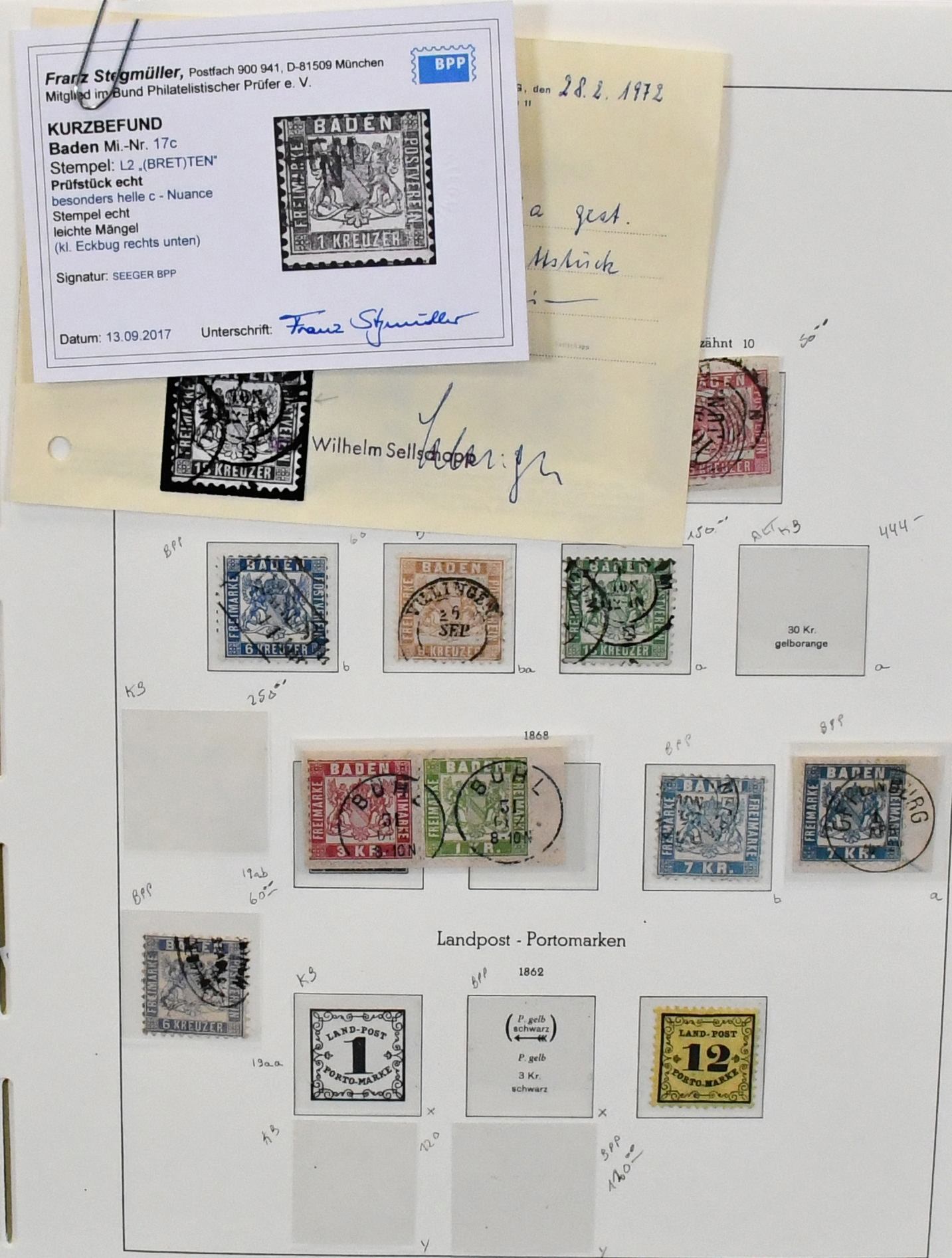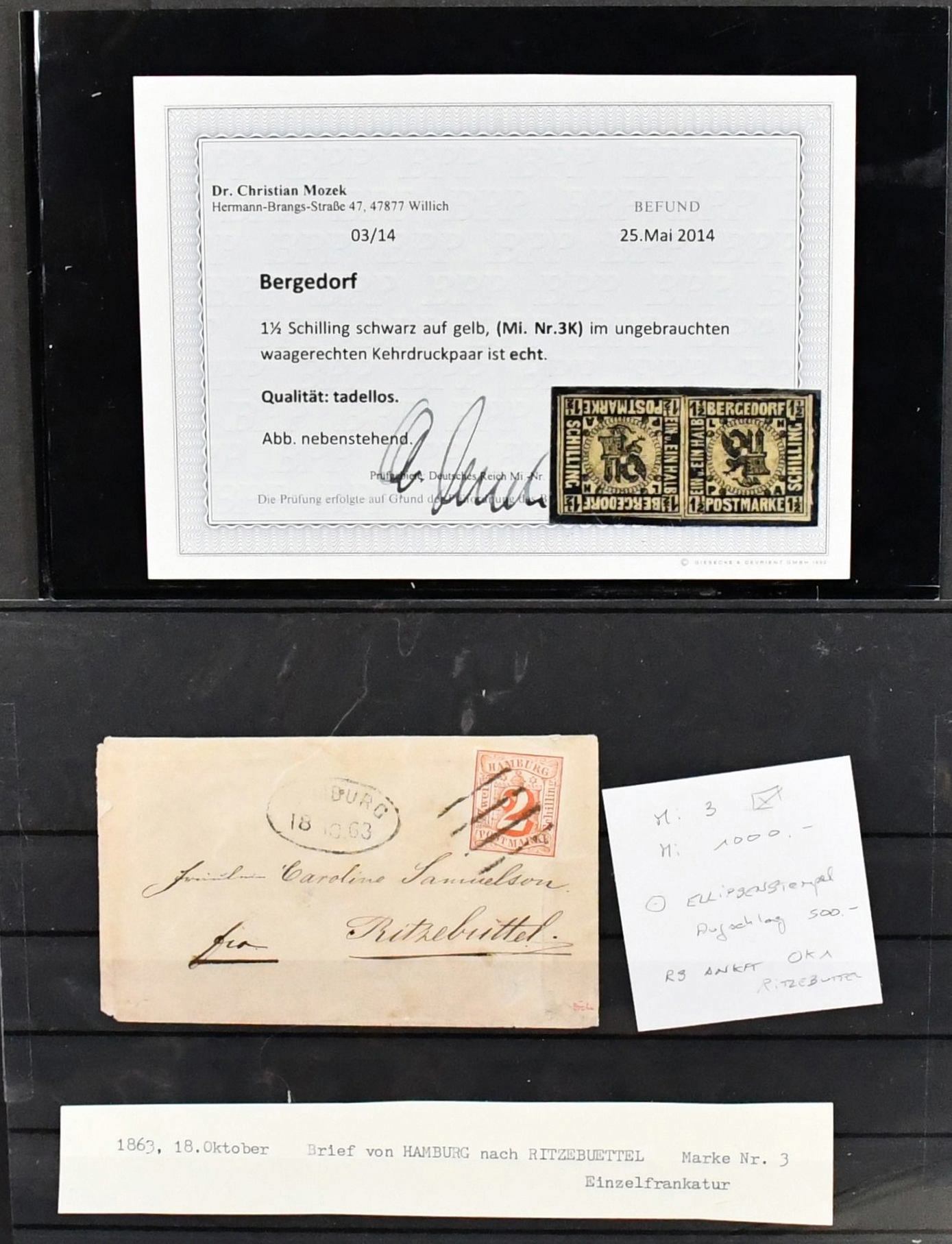 Altdeutschland, diverse Sammlungsteile und -Reste, dabei Slg. Baden mit u.a. tadellosen Nr. 16 u. 21a (je gepr./Attest), 17c mit Befund, etliche, teils bessere Briefe, Bergedorf kpl. mit Nr. 1a/b und 3K (Befund), Hamburg Nr. 3, 6 u. 15c je auf Brief, U3 und U6 je gebraucht, sowie Sachsen Nr. 2-19 kpl. (400,-)
