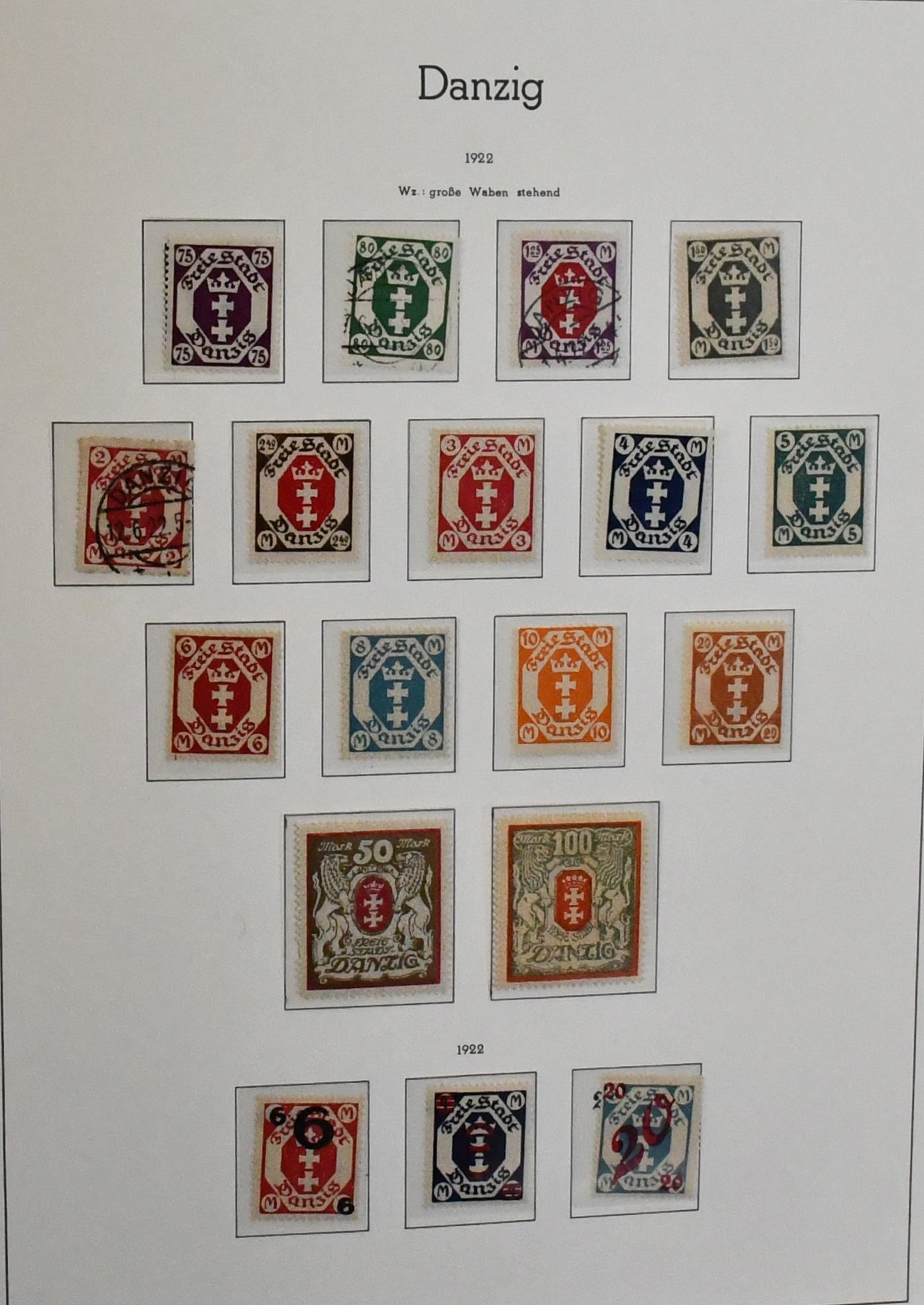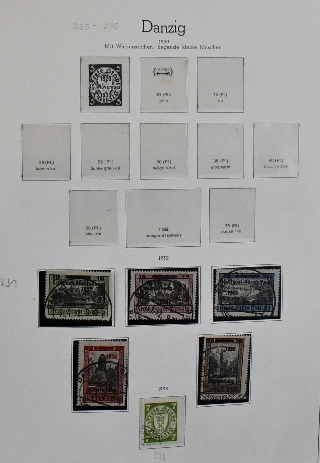 Danzig, 1920-1939, Vordruckalbum mit reichhaltiger Sammlung in allen Erhaltungen, ungebr./postfr. und zusätzlich gest., mit besseren Werten wie z.B. Luposta 1932, Wappen-Ausgaben, WHW, Bl. 1-3, Dienst etc. (150,-)