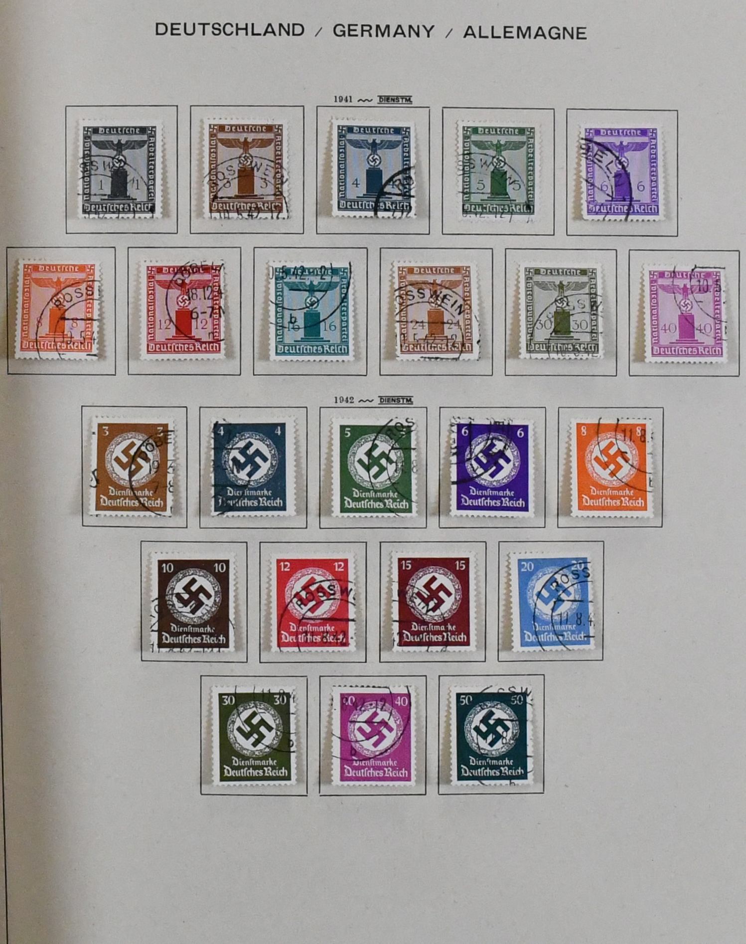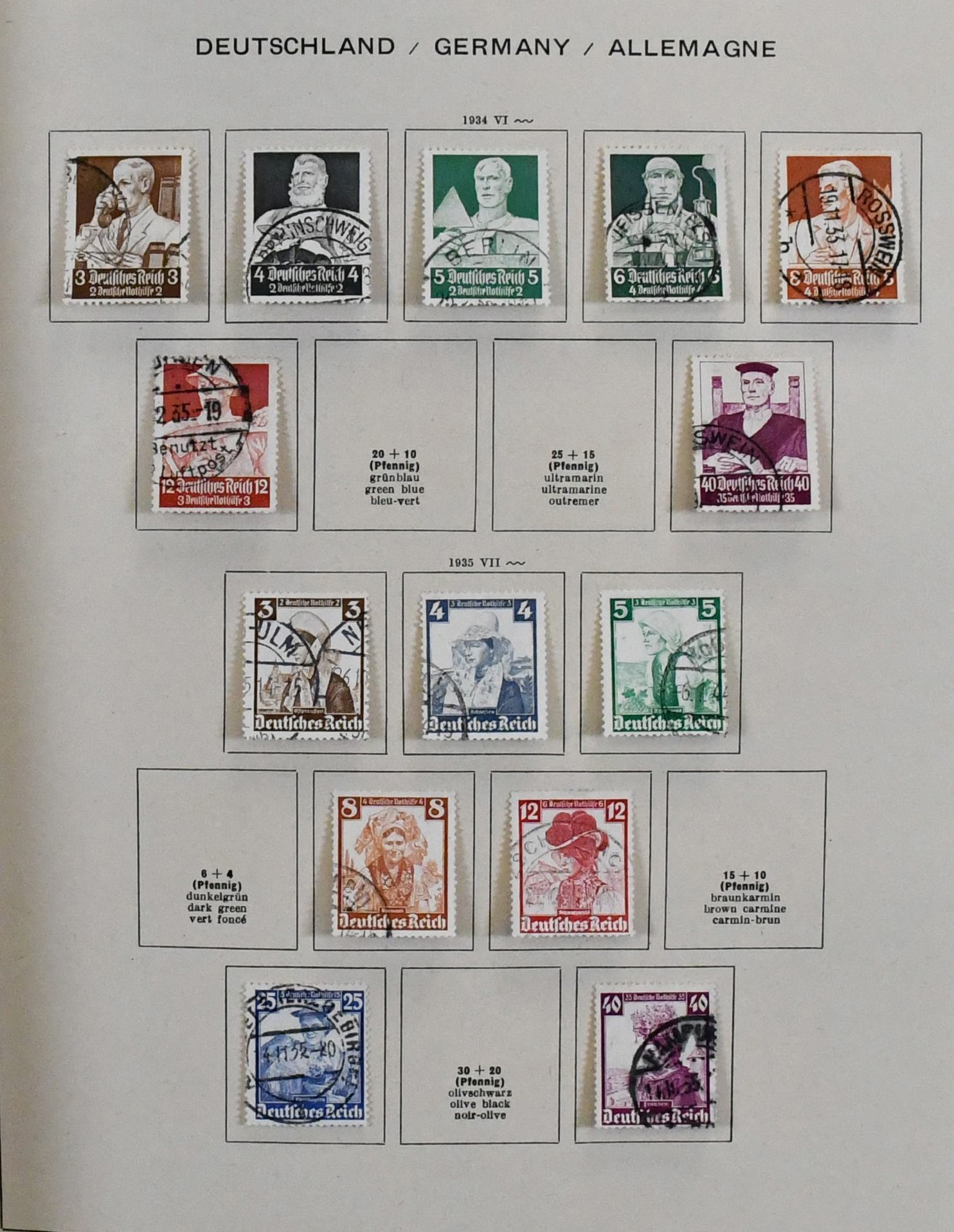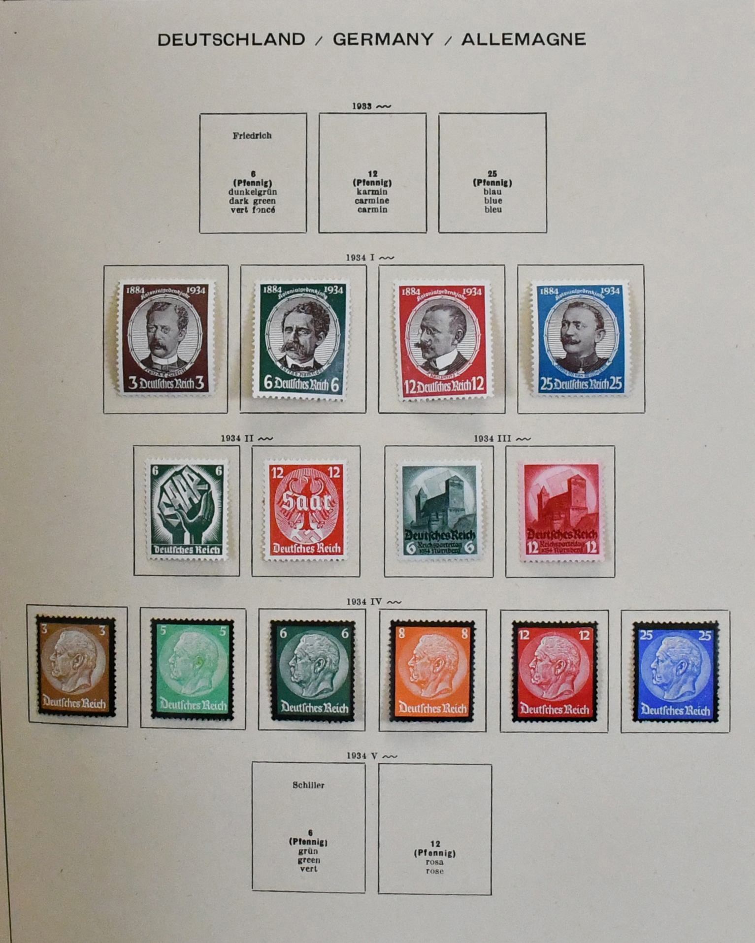 Deutschland/Europa, fünfbändiger Sammlungsbestand in untersch. Erhaltung, dabei Bund 1949-79 mit Frühwerten (Posthorn nur Kleinwerte bis 25 Pfg.), III. Reich-Teile, Frankreich, Schweiz mit besseren etc. (150,-)