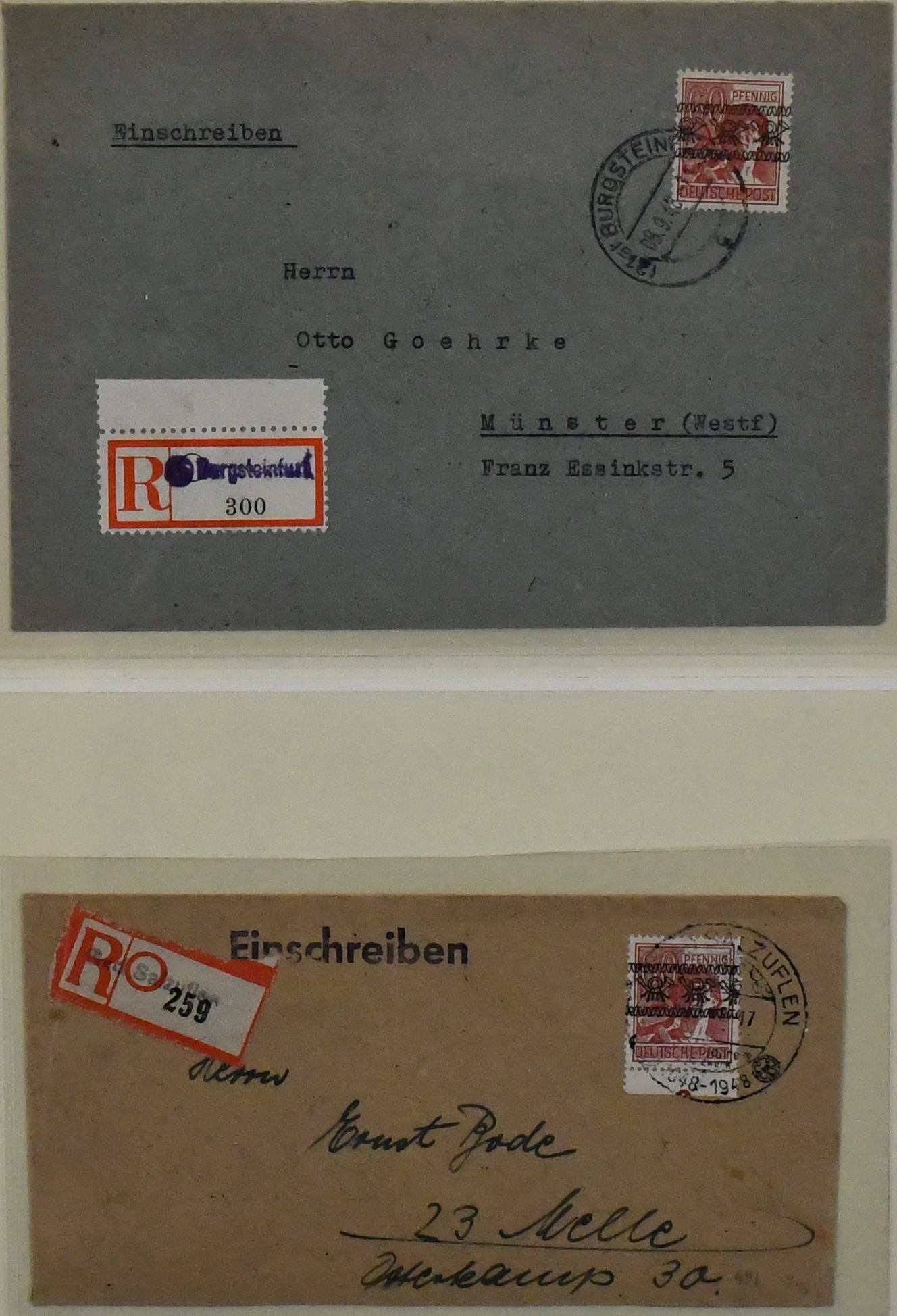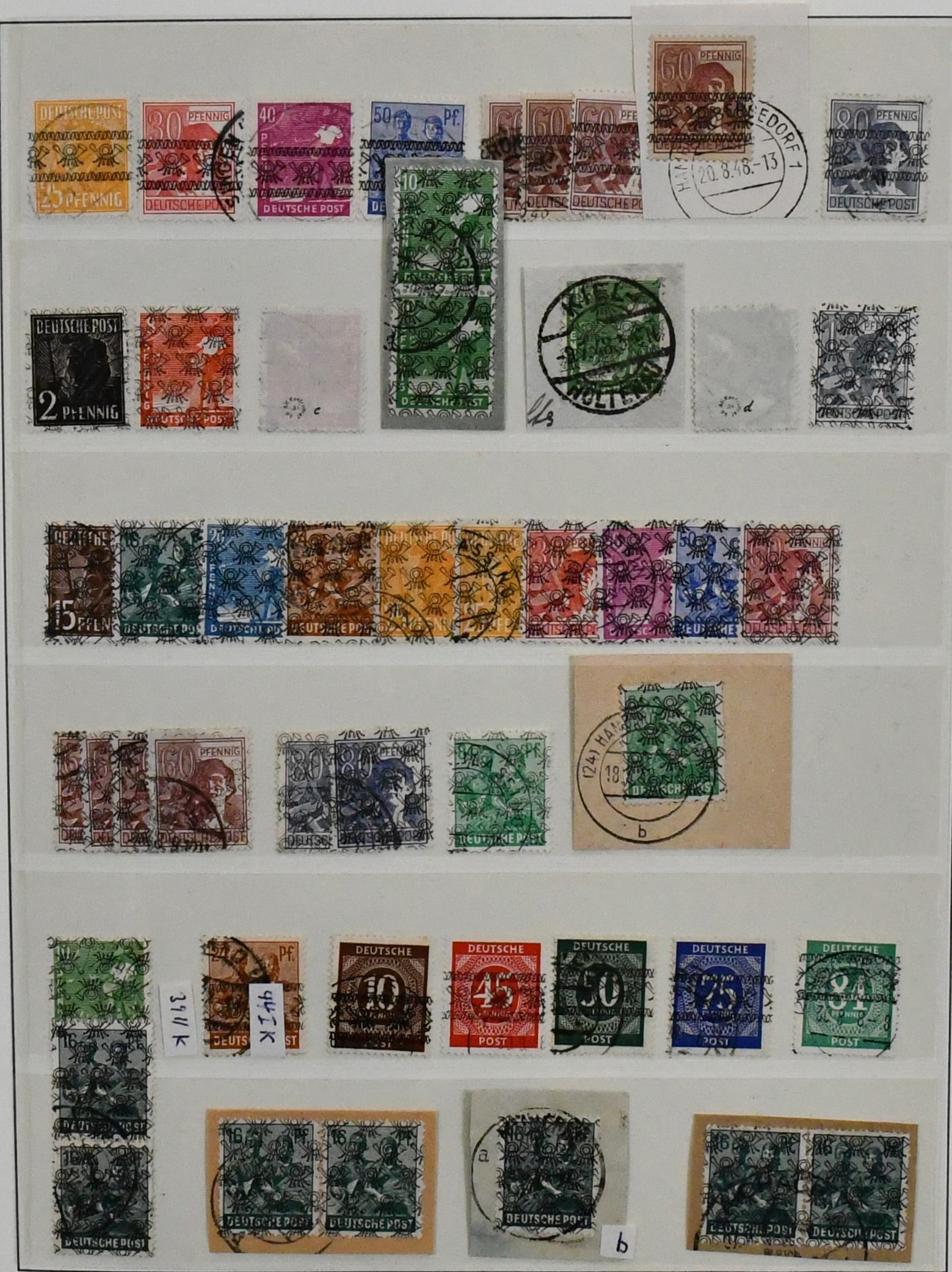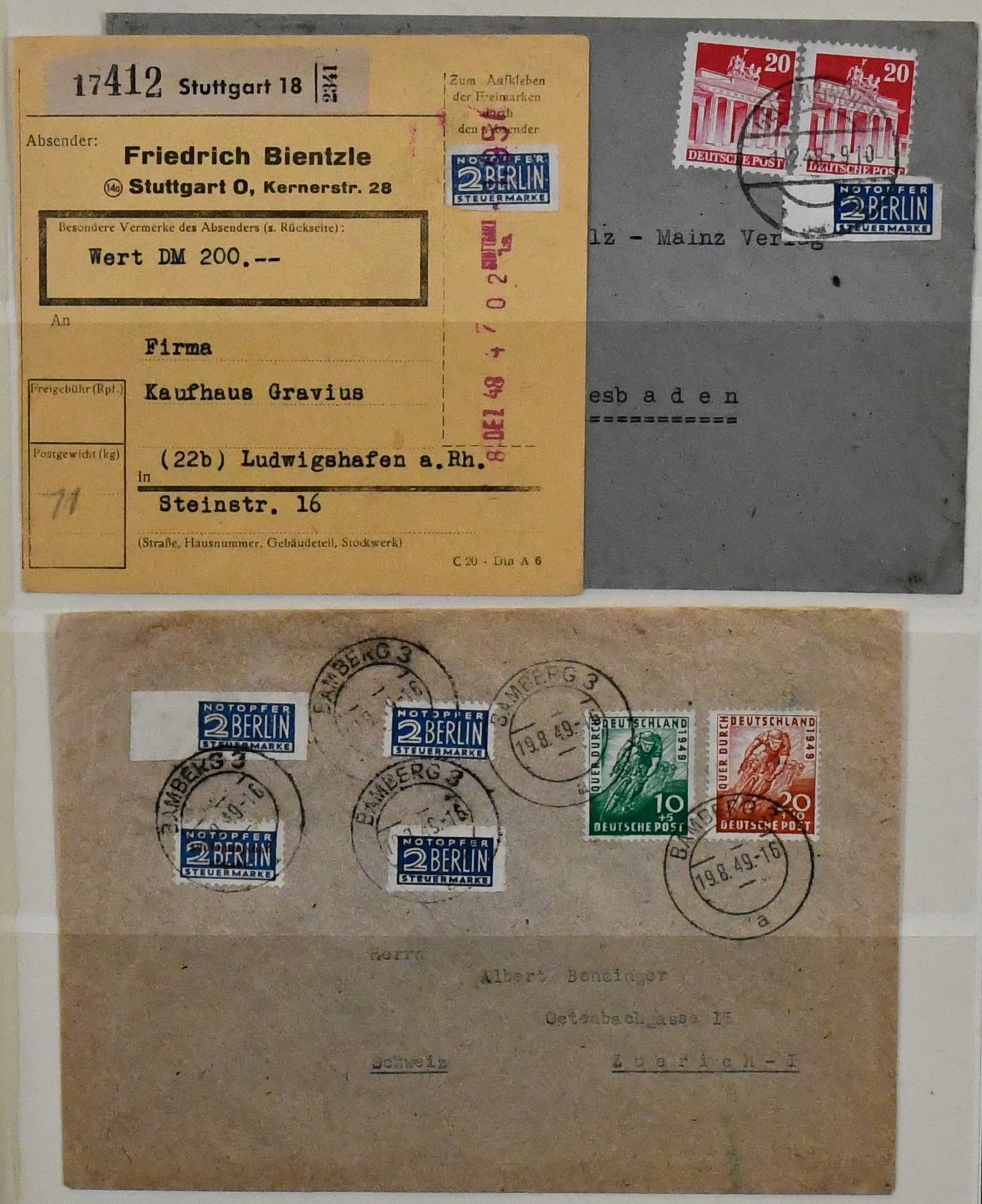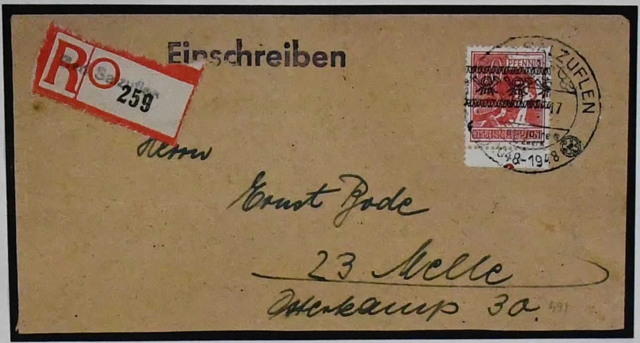 Bizone, Spezialsammlung Band-/Netzaufdrucke auf Arbeiter, dabei guter Teil der "hellen 60er" (Nr. 49I), hier z.B. zwei seltene Briefe mit jeweils EF (einmal mit Attest Schlegel), weitere mit Farbprüfungen inkl. Nr. 49I u. IIb etc. (120,-)