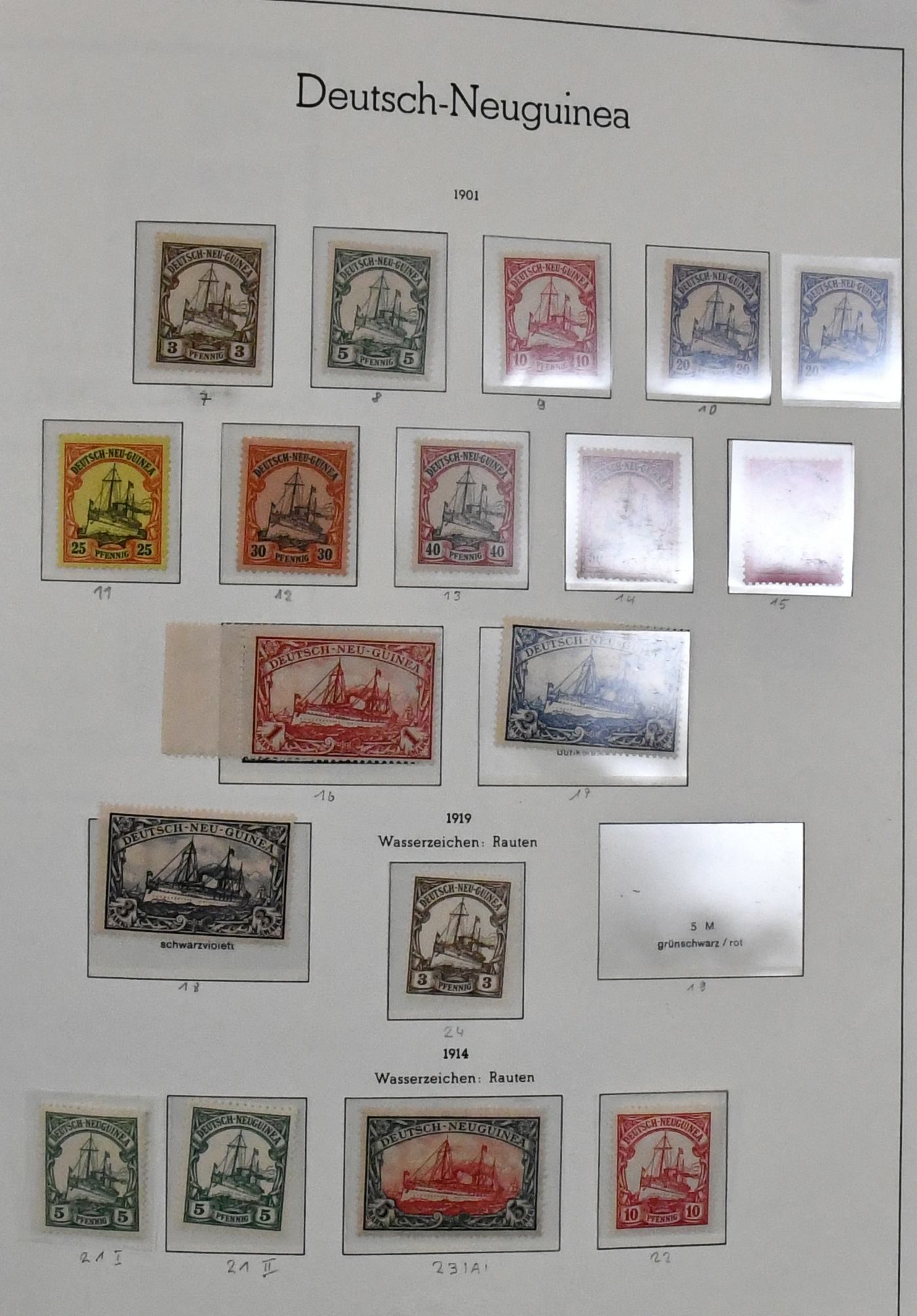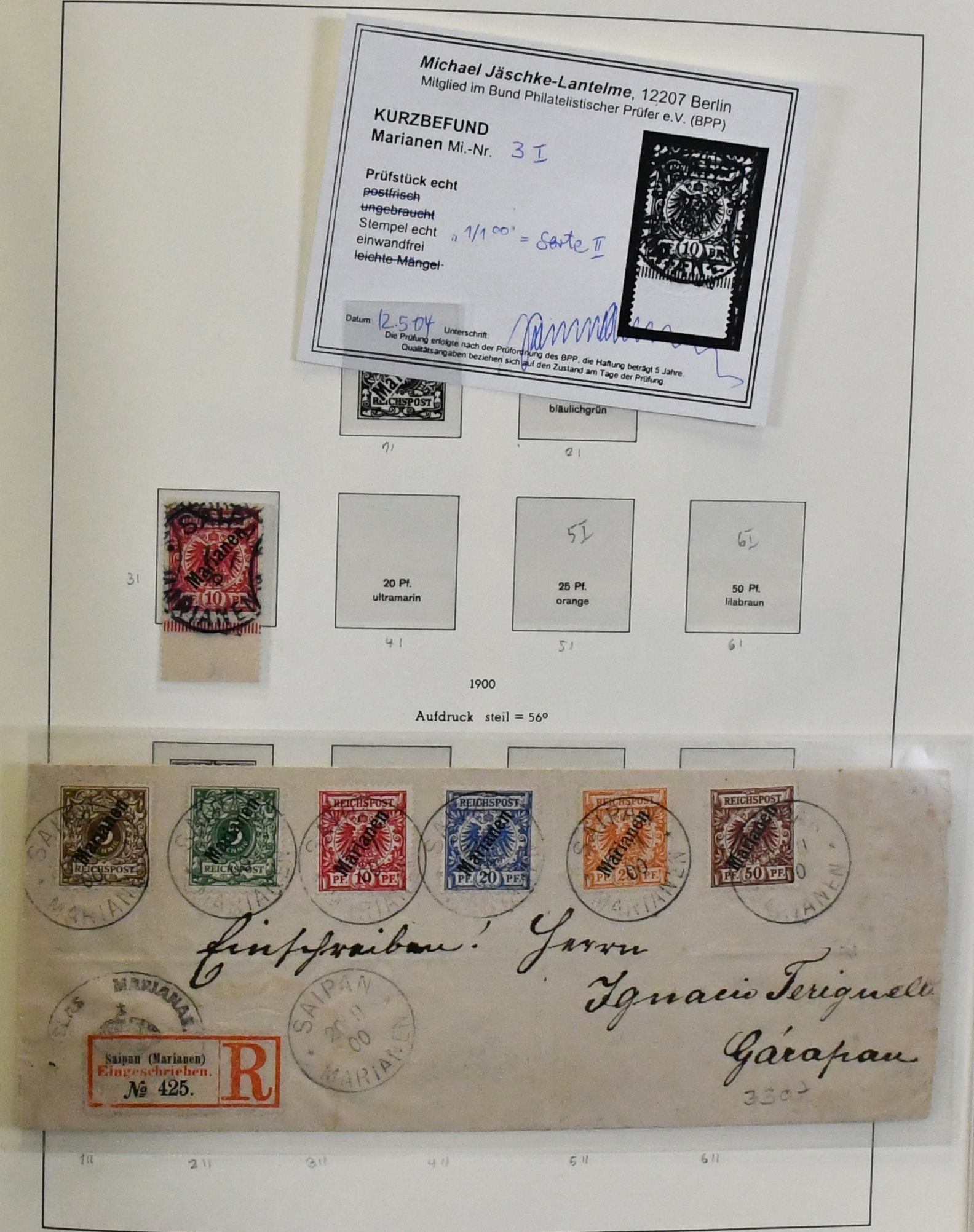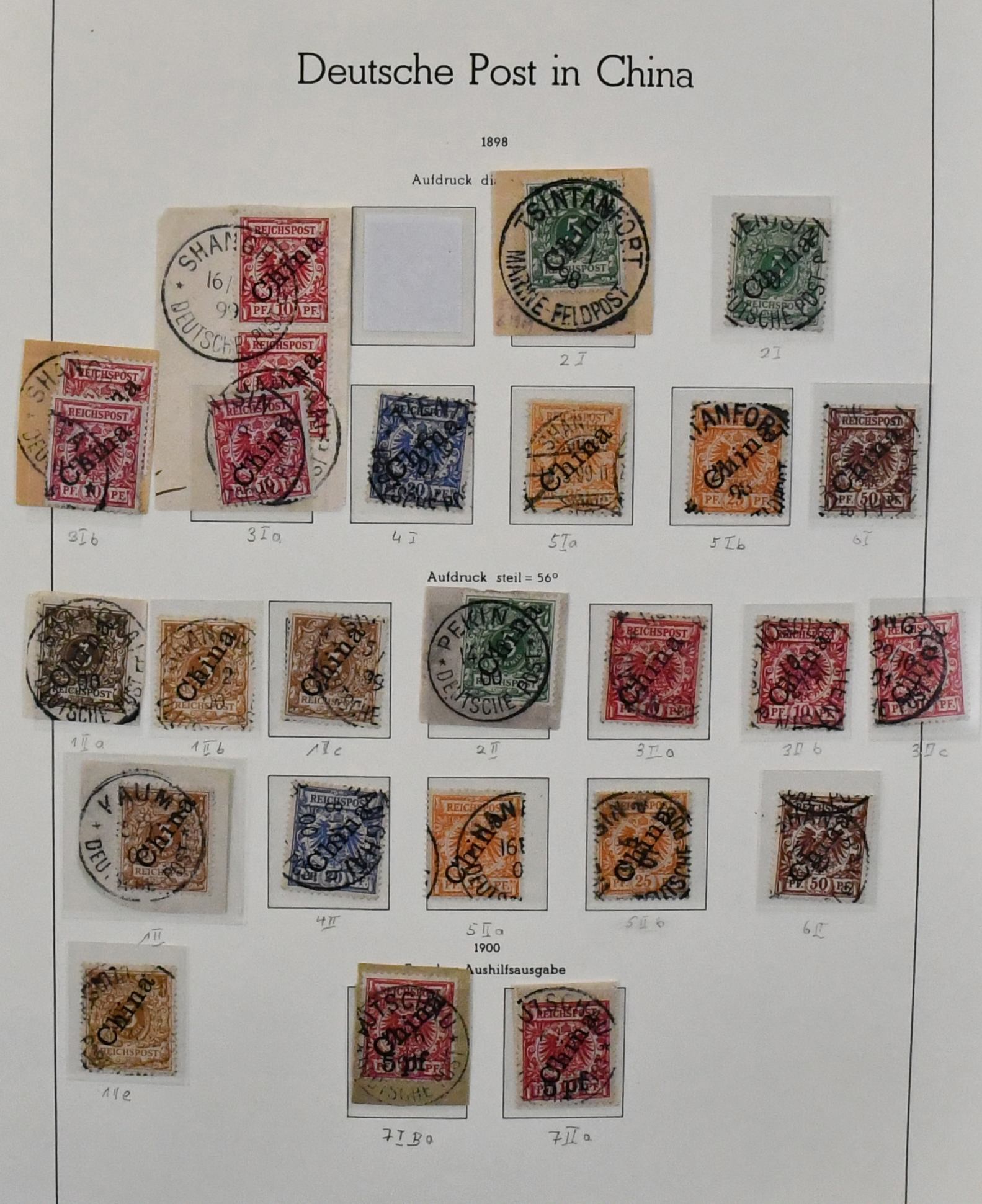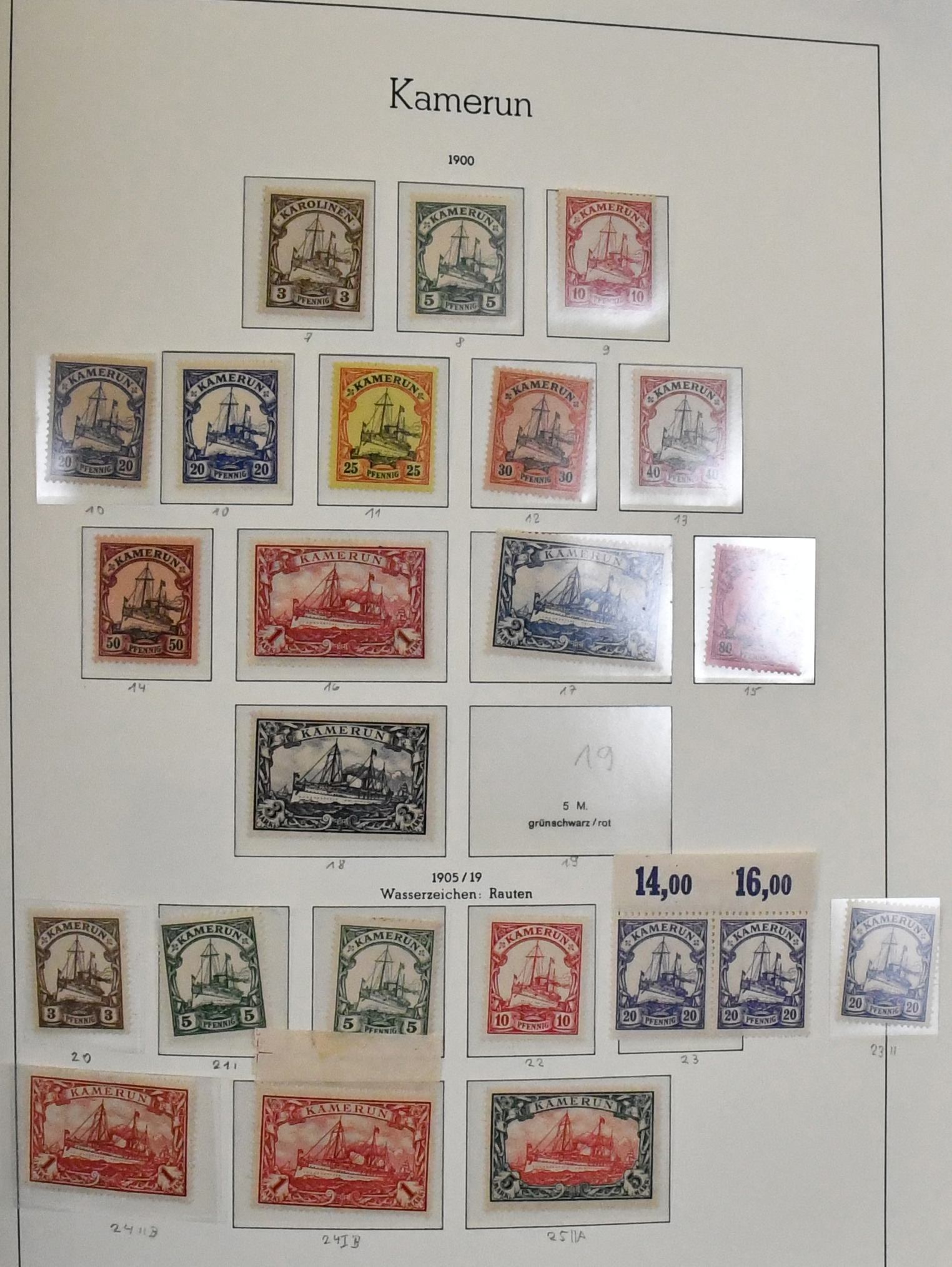 Deutsche Kolonien und Auslandspostämter, sehr umfangreiche und oft gut besetzte Sammlung mit vielen geprüften Werten (Atteste/Befunde) in zwei Bänden, gestempelt und zusätzlich postfr./ungebr., dabei gestempelt fast kpl. mit nahezu allen 5 Mk.-Werten, zusätzlich mit vielen Vorläufern und Krone-Adler-Farben, z.B. China Futschau Nr. 7I u. II mit Attesten, 1IIe mit Attest Jäschke, Marokko Nr. 3b, e, 19IV mit Attest Steuer, 33A Befund, Türkei V37f, 21II, 23, DOA, DSWA Nr. 9a, b, Atteste, 32Aa gepr., Karolinen Nr. 19, Kiautschou Nr. 3IIc, 4II mit Befunden, Tsingtau-Ausgaben, Nr. 17 gepr., Marianen Nr. 1/6II auf Brief usw., ähnlich ungebr./postfr. (hier teils unterschiedlich), dazu Lagerbestand mit ebenfalls guten Werten (3000,-)