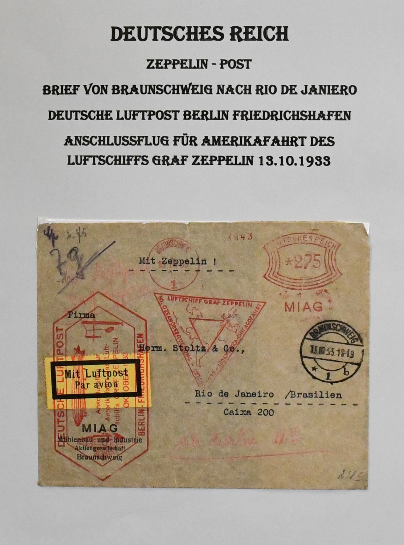 Alle Welt, interessanter alter Briefbestand in Alben und lose, neben Belegen Südamerika inkl. Chile ab Klassik, alte Finnland-Teile mit Wappen-Frankaturen, vor allem aber Deutschland mit u.a. Besetzung 1./2. Wk., u.a. Deutsche Dienstpost Niederlande, Deutsches Reich gut mit Zeppelin-Frankaturen Polar- und Südamerikafahrt, Herzstück Bl. 2 auf Bedarfsbrief, Chicagofahrt auf zwei Belegen, nach 1945 mit besseren (800,-)