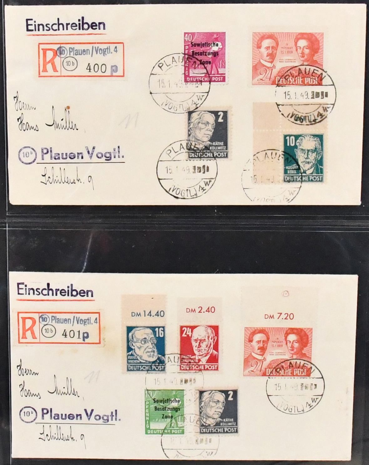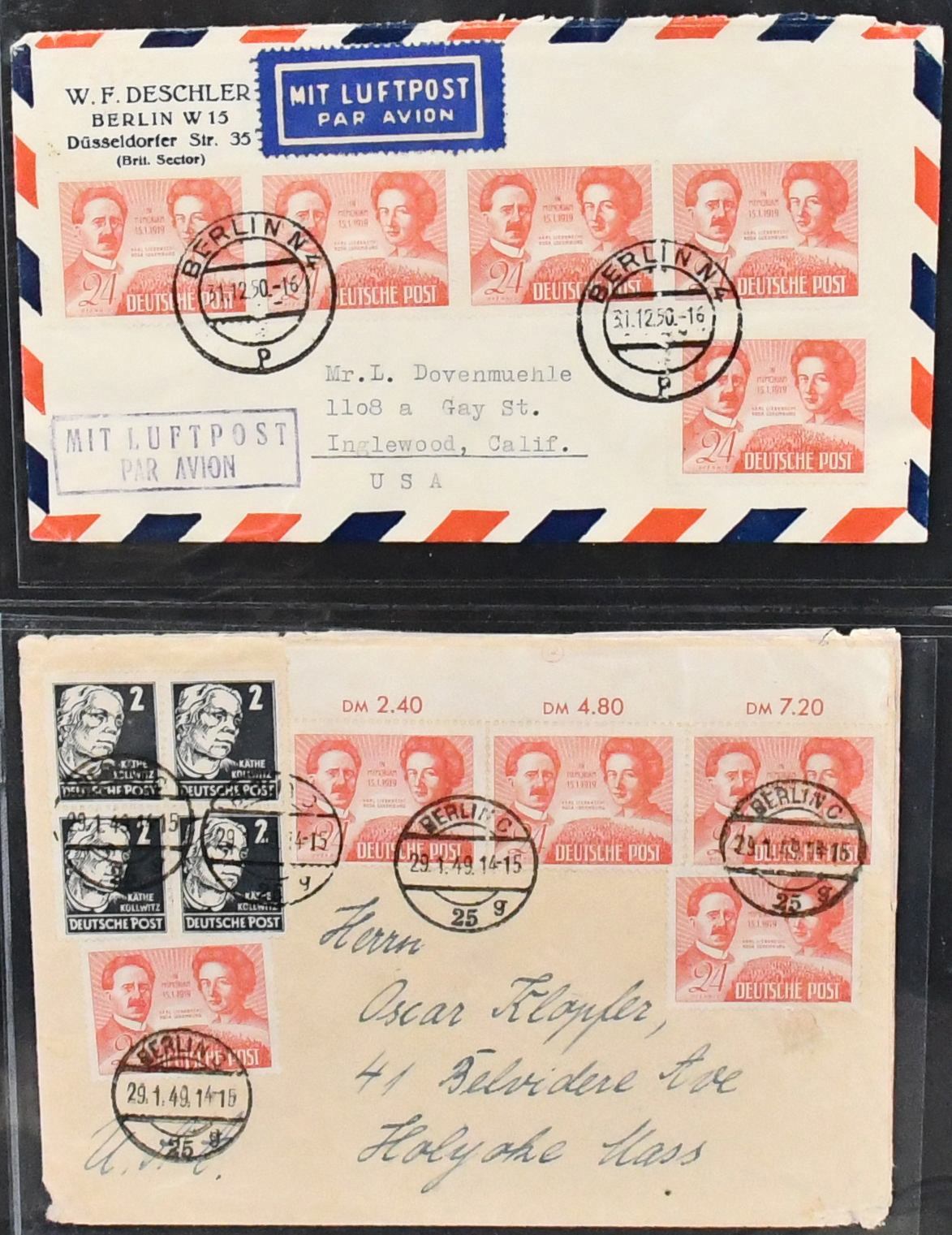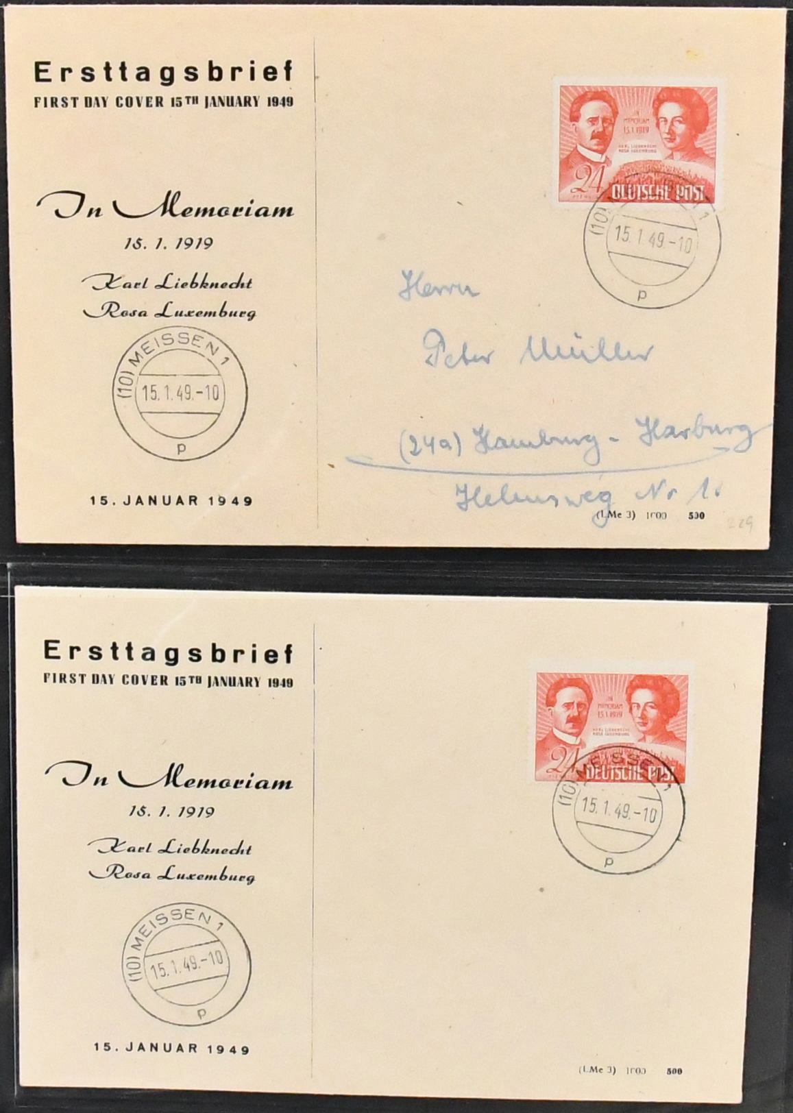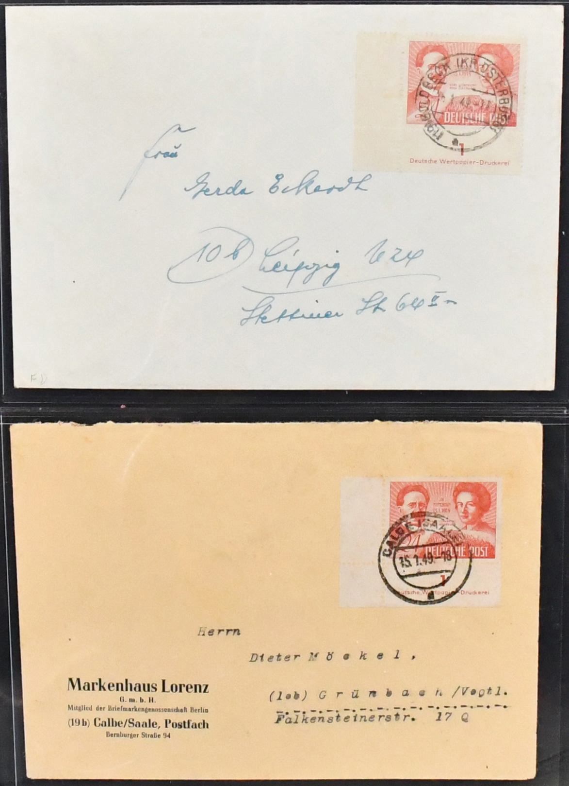SBZ, Mi.-Nr. 229, 24 Pfg. Liebknecht/Luxemburg, Spezialslg. von rund 140 Belegen, dabei eine Vielzahl von FDCs, u.a. eine Karte FDC Berlin-West, wohl Unikat, zwei weitere Verwendungen in West-Berlin (Mi. je 1600,-), diverse hohe MeF, DV/DZ, Plattenfehler usw. Reizvolles Los! (600,-)