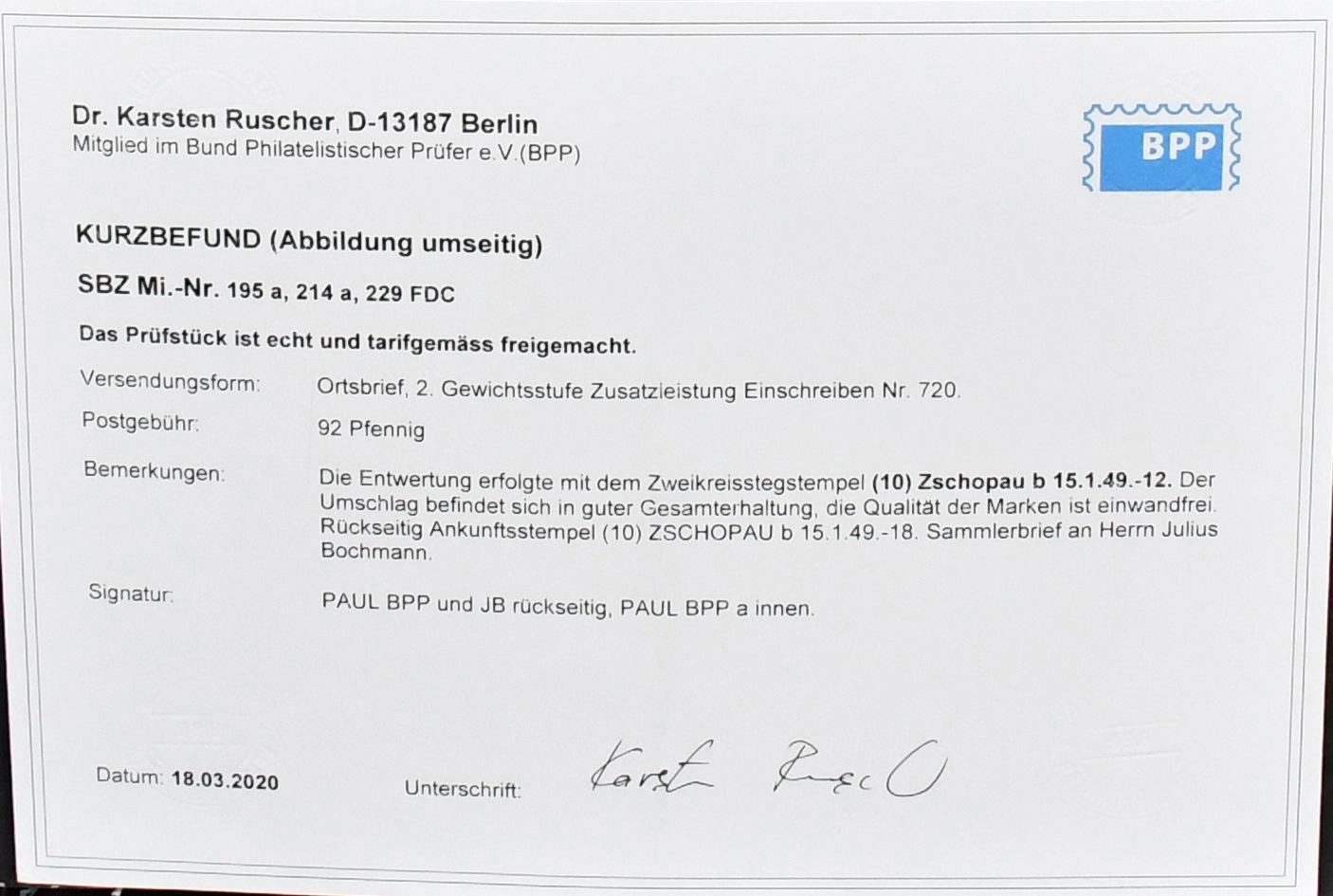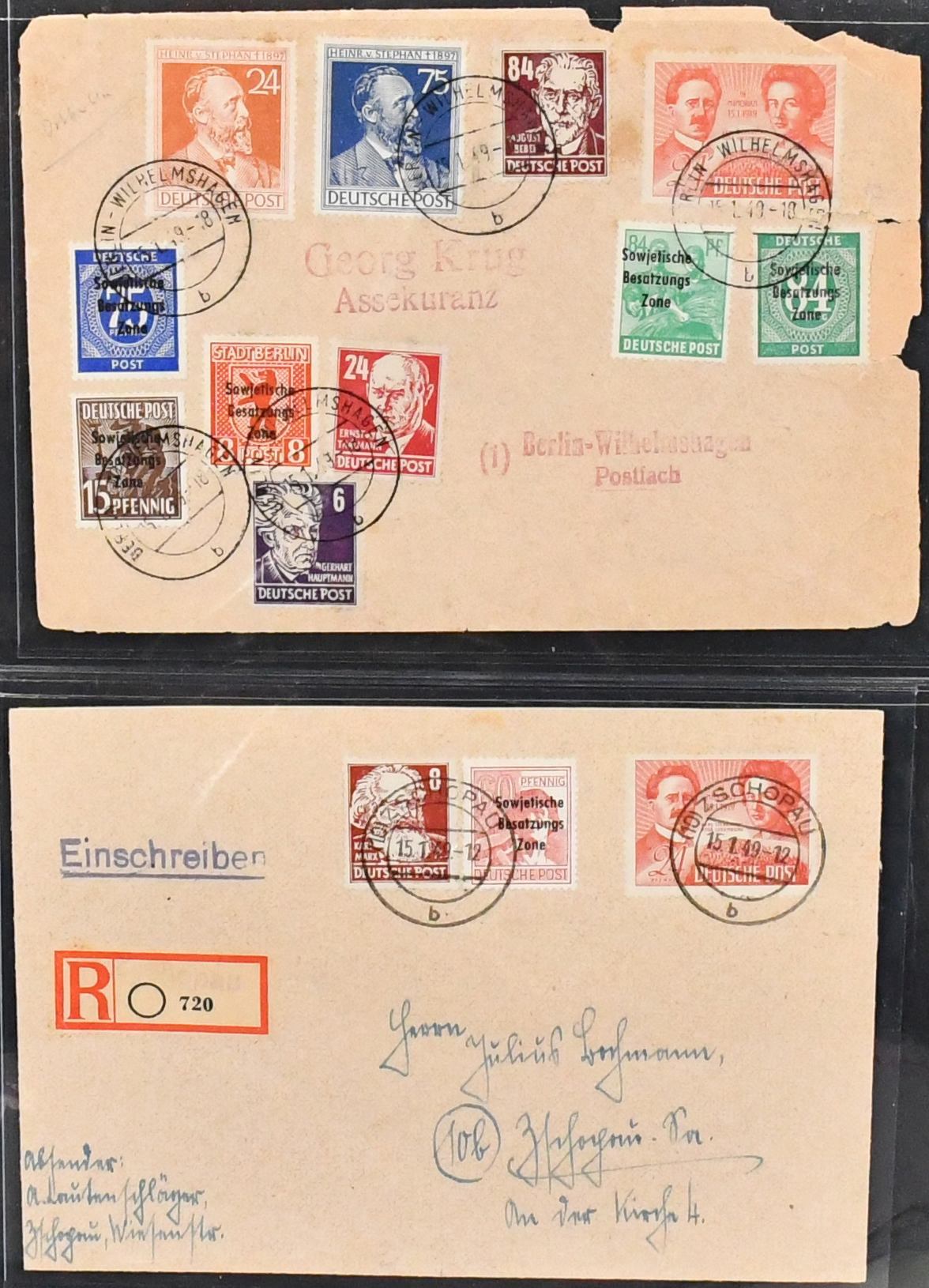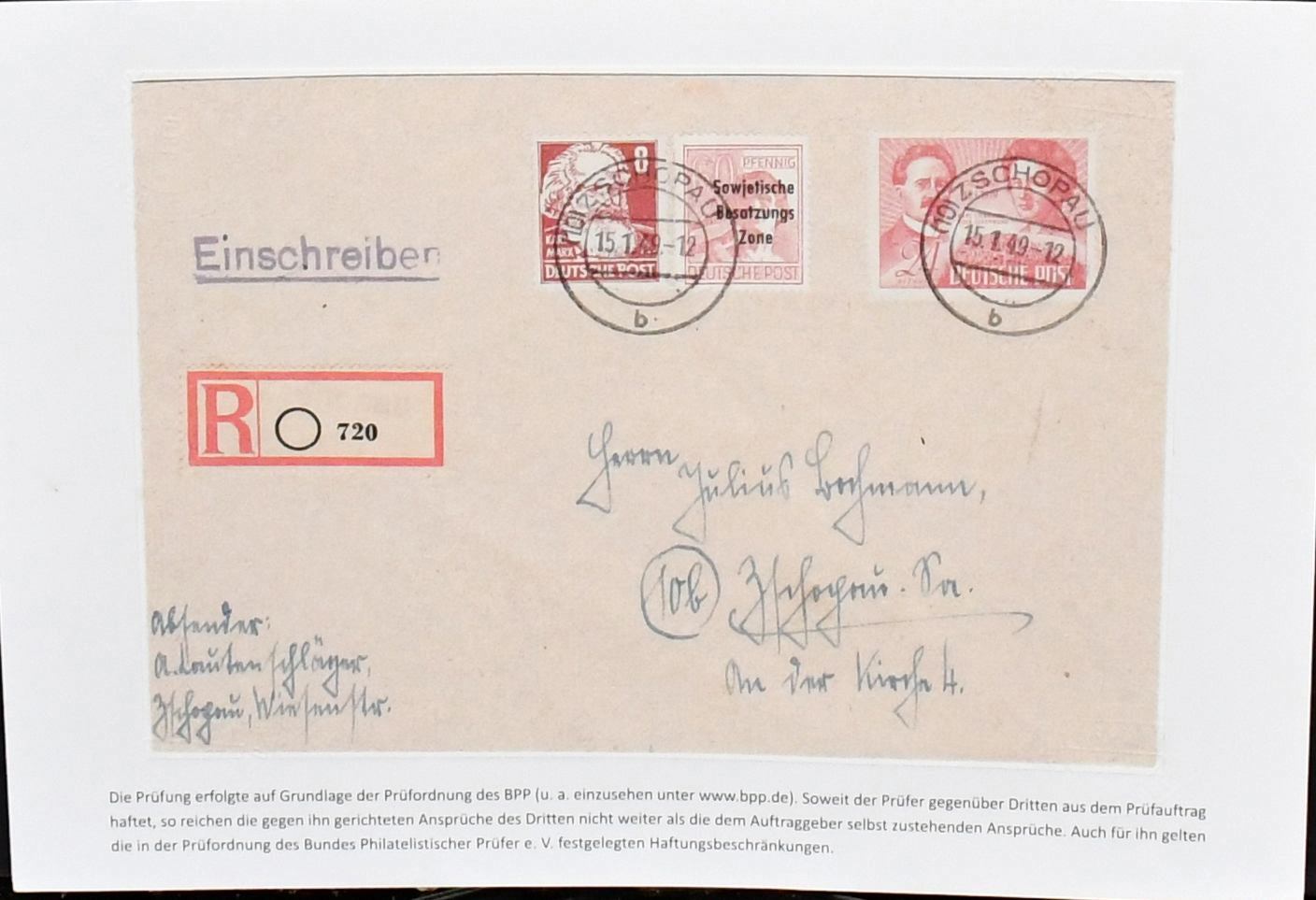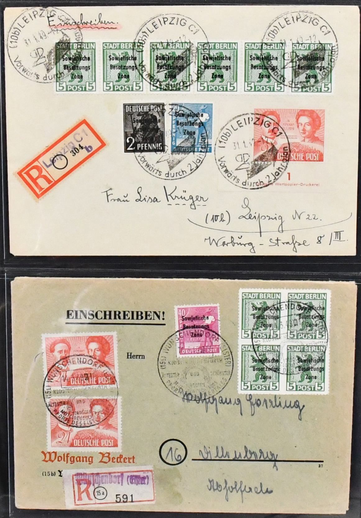 SBZ, Mi.-Nr. 229, 24 Pfg. Liebknecht/Luxemburg, Spezialslg. von rund 140 Belegen, dabei eine Vielzahl von FDCs, u.a. eine Karte FDC Berlin-West, wohl Unikat, zwei weitere Verwendungen in West-Berlin (Mi. je 1600,-), diverse hohe MeF, DV/DZ, Plattenfehler usw. Reizvolles Los! (600,-)